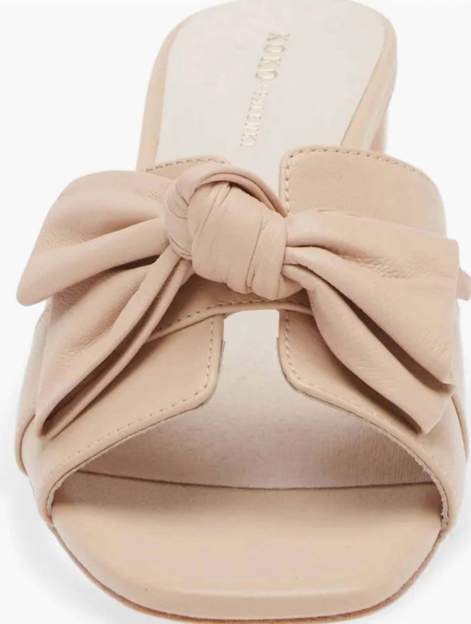 Introducing the Women's Sidney Slide Sandal by Koko + Palenki, a chic choice for the summer season. These bone leather slide sandals feature an open toe and a stylish bow detail. With a 2" low block heel, they offer comfort and elegance for any occasion. Made from fine leather and imported, these sandals are crafted for the discerning woman who appreciates both style and quality.