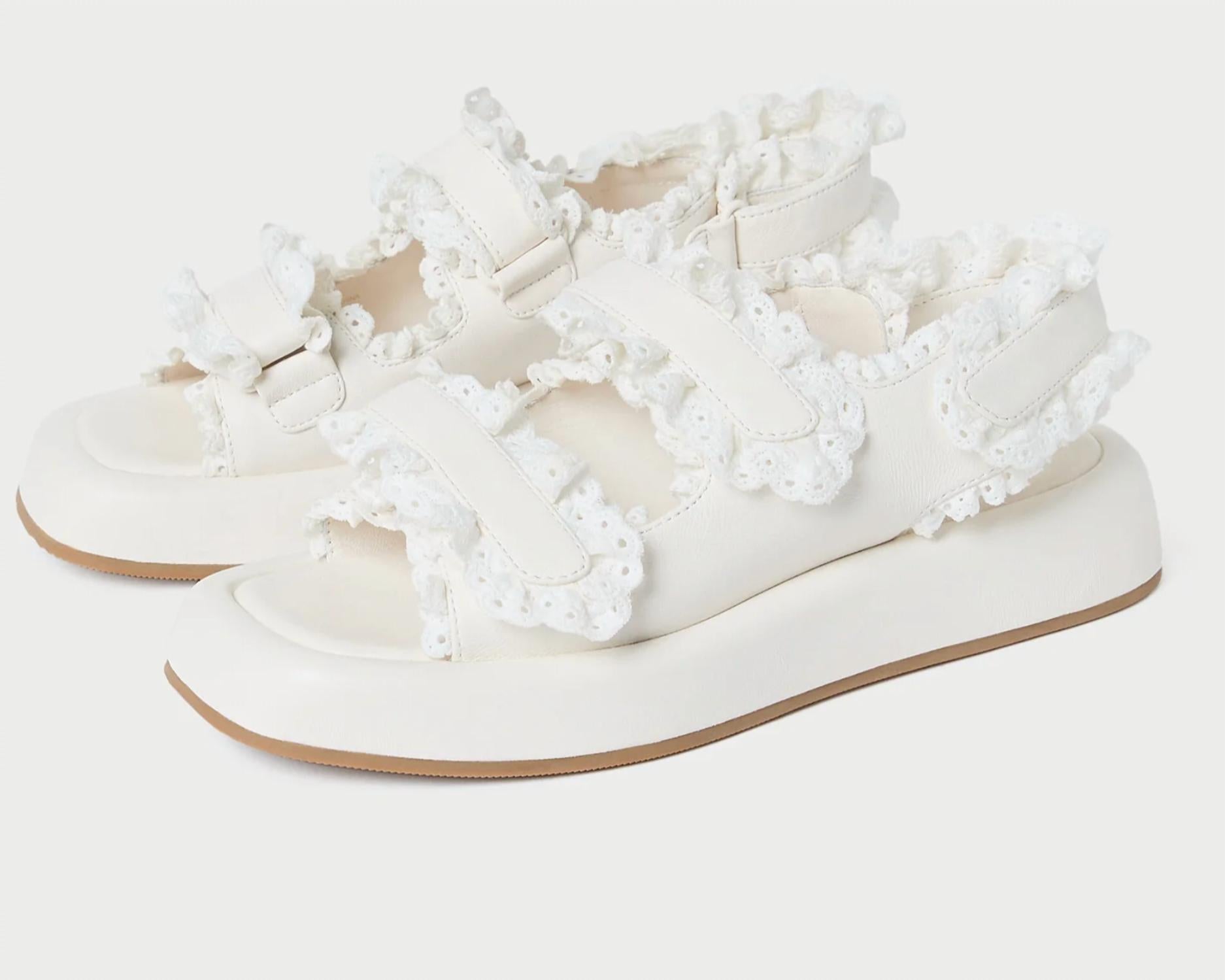 Clássico e fofo, perfeito para usar o dia todo. Adoramos esta sandália. Aposte no estilo sem esforço com a Sandália Plataforma Blaise Two Strap da Loeffler Randall, confeccionada em couro creme elegante com detalhe de cadarço com ilhós. Esta sandália aberta apresenta uma plataforma plana esportiva de 3,1 cm, perfeita para um toque de elegância. Projetada com foco no conforto, inclui palmilha acolchoada em couro e tira ajustável no calcanhar com fecho de velcro para um ajuste seguro. Importada para garantir a qualidade.