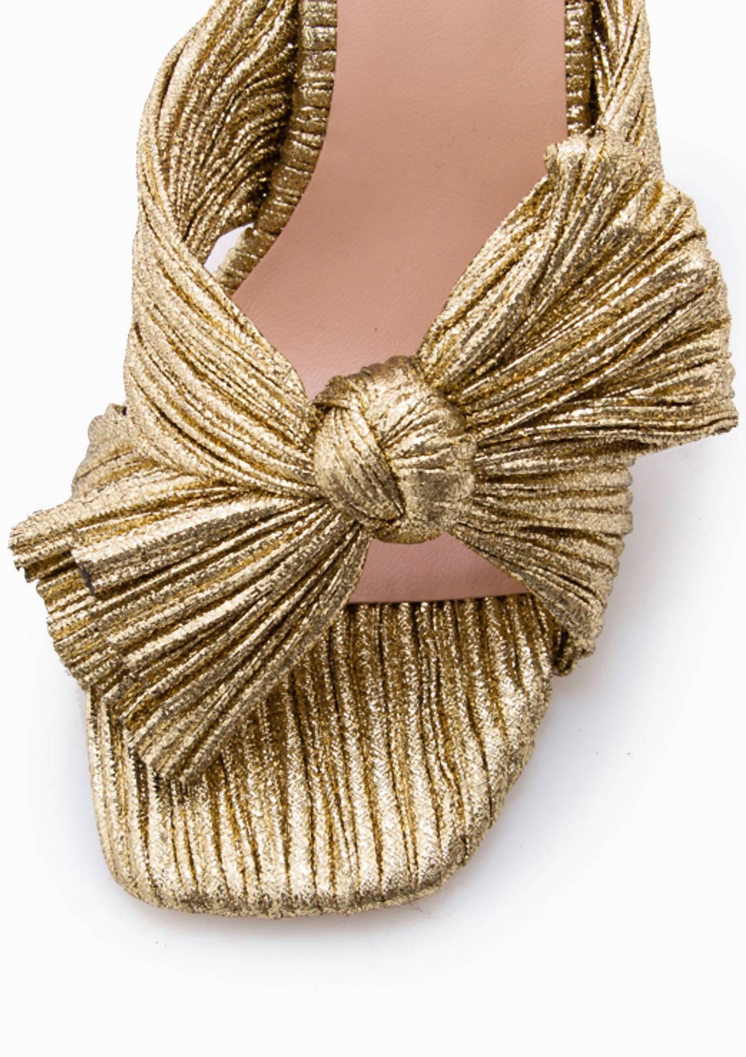 Esta sandália vai levar você do brunch ao jantar e a tudo o mais. Experimente o epítome do luxo discreto com a Sandália Mule Plissada Loeffler Randall Claudia Feminina na cor Dourado. Com bico aberto sofisticado e salto agulha de 8 cm, estas sandálias esbanjam elegância, perfeitas para coquetéis de verão. Os detalhes plissados adicionam um toque chique a esta peça atemporal, acentuando seu estilo sem esforço. Feitas para a mulher adulta exigente, estas sandálias são criadas para complementar qualquer conjunto elegante.