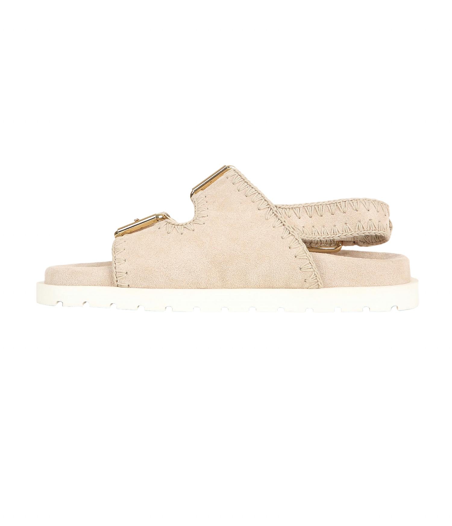 Flowy dresses, cropped pants, and even jumpsuits... this sandal works with them all!Beach by Matisse collection. Soft faux suede fabric upper. Slingback strap with adjustable buckle closure. Dual upper straps with adjustable buckle closures. 1.25″ sole height. Open round toe. Lightly padded contoured footbed. Man-made outsole. Exaggerated stitched detailing.