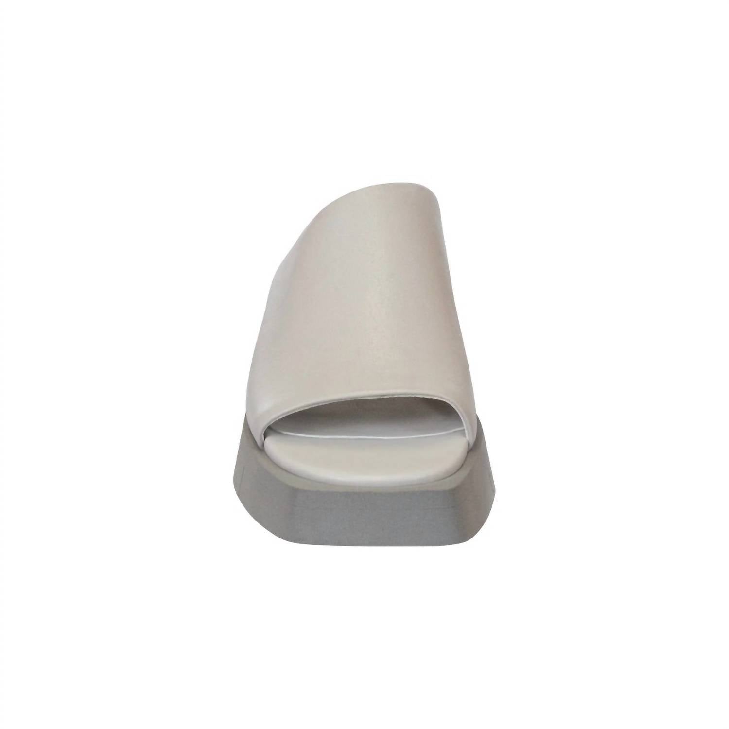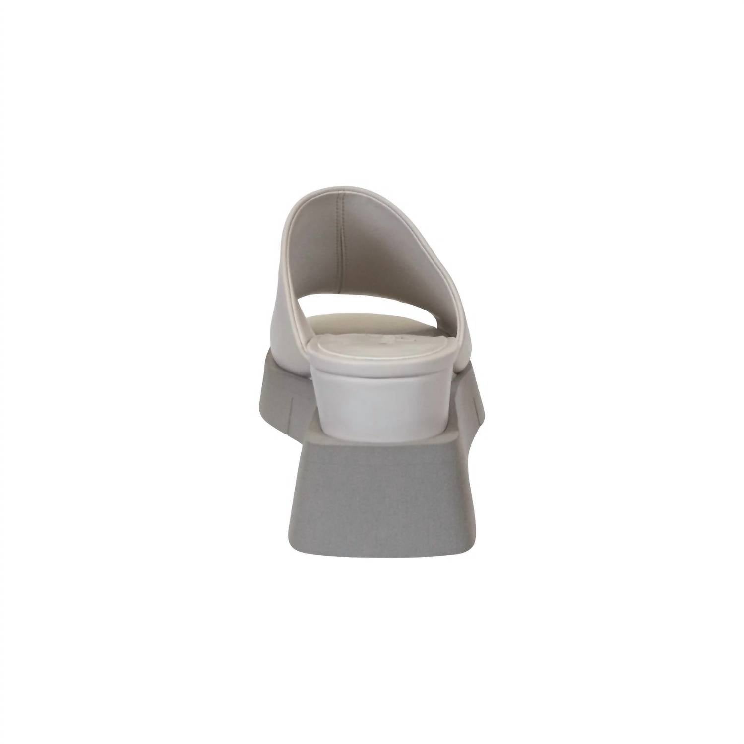 Classicly cute and all-day-wearable. We love this sandal. Meet the Women's Infinity Platform Sandal by Naked Feet, a sophisticated choice for your wardrobe in the mist color. Handcrafted with genuine leather and featuring a vegan leather lining, this sandal epitomizes minimalist design with an upfront style and asymmetrical wide front strap. The square open toe and EVA platform outsole provide a comfortable, stylish lift ideal for any dinner party or spring outing. Enjoy the blend of comfort and fashion with its padded sock and footbed, perfect for medium-width feet.