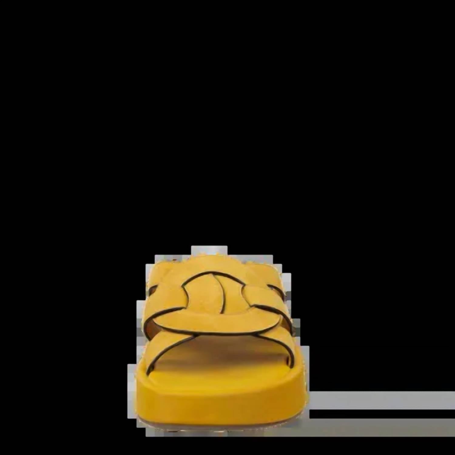 These canary yellow sandals redefine the world of footbed sandals with a vibrant resort wear vibe. With a beautifully woven leather upper blending seamlessly with a generously padded platform, these luxurious yellow suede sandals are thoughtfully designed for the discerning woman who values both fashion and functionality. Slip on for the market, or pair with your favorite summer dresses for a resort wear look that transcends fleeting trends, embodying timeless femininity with effortless grace.