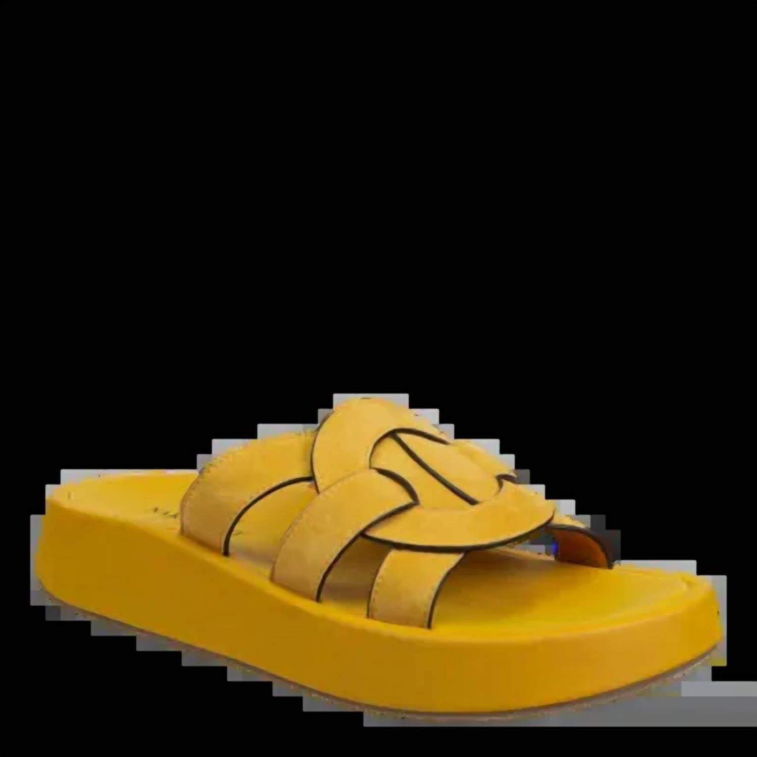 This sandal will take you from brunch to dinner and everything in between. These canary yellow sandals redefine the world of footbed sandals with a vibrant resort wear vibe. With a beautifully woven leather upper blending seamlessly with a generously padded platform, these luxurious yellow suede sandals are thoughtfully designed for the discerning woman who values both fashion and functionality. Slip on for the market, or pair with your favorite summer dresses for a resort wear look that transcends fleeting trends, embodying timeless femininity with effortless grace.