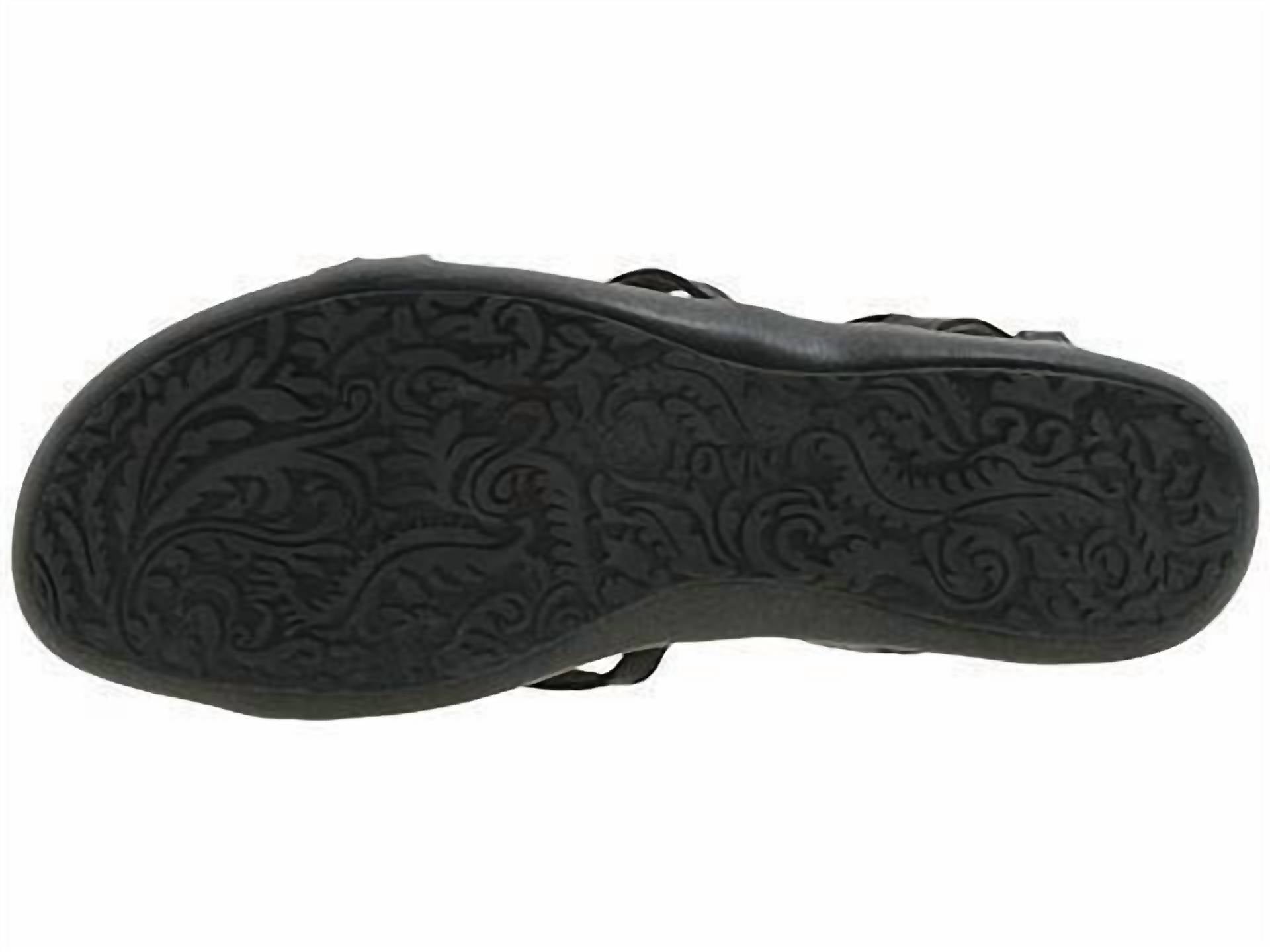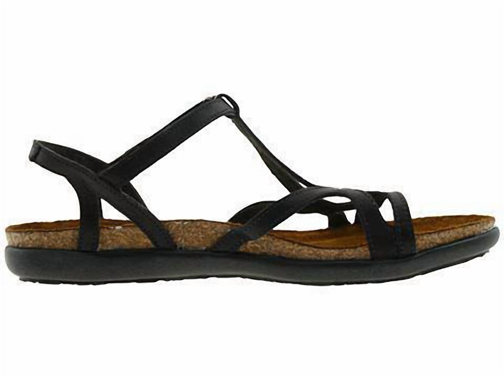 Flowy dresses, cropped pants, and even jumpsuits... this sandal works with them all! Experience style and comfort with the Women's Dorith Gladiator Sandal by NAOT, crafted from premium Black Raven Leather. This minimalist sandal features a hook and loop strap along with a backstrap, ensuring enhanced stability for summer occasions like a dinner party. The anatomic cork & latex footbed, wrapped in luxurious suede, adapts to your foot's shape over time, offering personalized comfort. With a .75" TPR sole, it caters to narrow to medium widths, making it a perfect fit for those with medium shoe width looking for an open toe design.