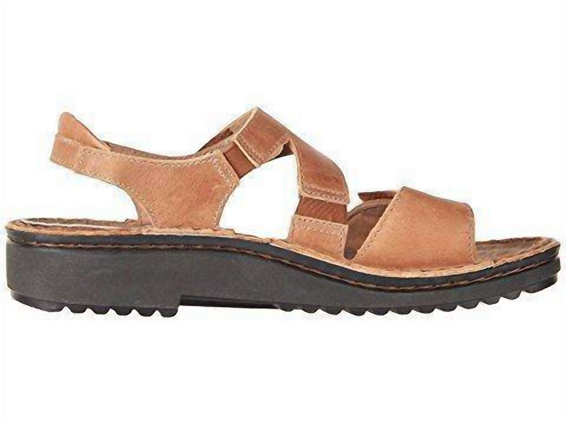 This sandal will take you from brunch to dinner and everything in between. Elevate your summer style with the NAOT Women's Enid Leather Sandal in Latte Brown, perfect for boho chic dinner parties and sunlit adventures. This sandal features a leather upper with hook-and-loop straps and goring for a comfortable, customizable fit. Designed with a breathable leather lining and a removable, suede-covered cork and latex footbed, it offers all-day cushioned comfort. Crafted with a durable rubber outsole, this flat heel sandal with an open toe design is imported and ready to be your go-to summer accessory.