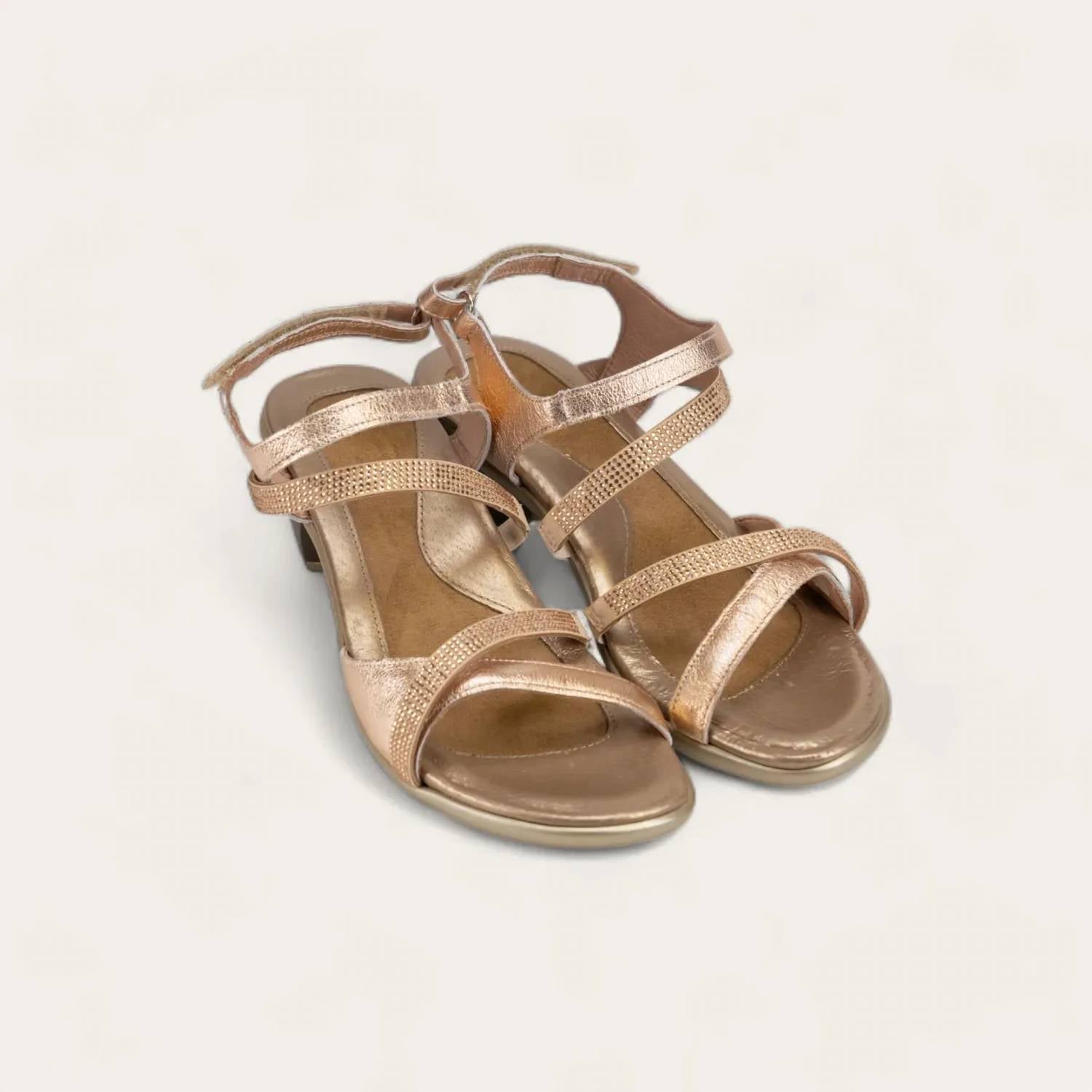Clássico e fofo, perfeito para usar o dia todo. Adoramos esta sandália. O Innovate é o salto com tira traseira perfeito para todos os seus eventos festivos! Esta sandália possui uma tira traseira de velcro e tiras centrais com reforço, criando um ajuste personalizado. O Innovate possui uma tira frontal acolchoada para máximo conforto. Os detalhes femininos em strass fazem este calçado se destacar da multidão. A palmilha anatômica de cortiça e látex da Naot é revestida em couro com um centro de microfibra para evitar escorregões e se molda ao formato do pé com o uso. A Coleção Avantgarde apresenta um solado de borracha termoplástica (TPR) com haste de metal. Este solado oferece a aparência de um salto de 5 cm sem a sensação. Informações do produto Ajuste: Fiel ao tamanho, tamanhos intermediários devem ser maiores Material da sola: borracha termoplástica Altura do salto: 2" Largura: Média Antiderrapante: Não Compatível com órteses: Não Palmilha removível: Não