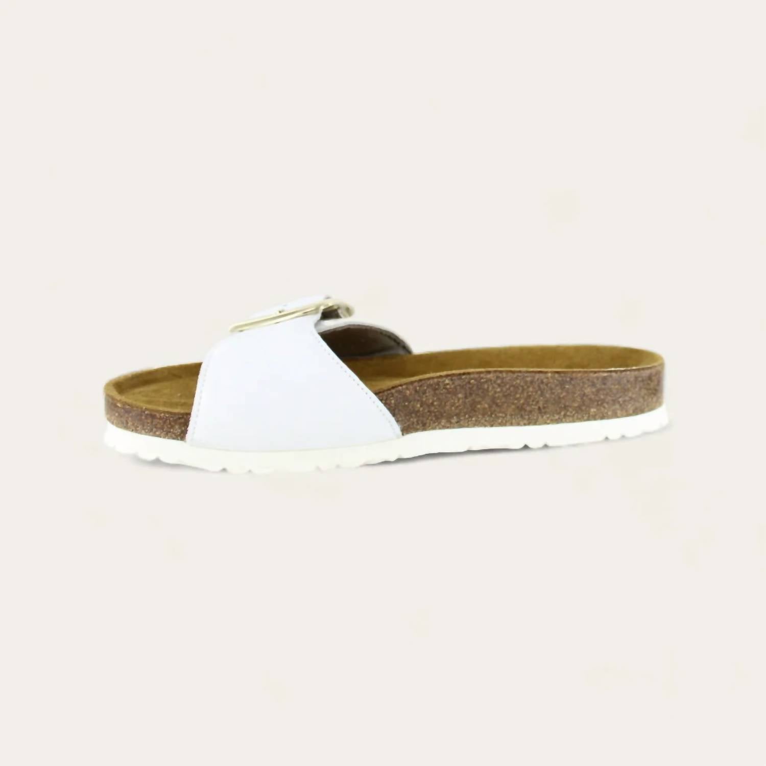 Cabedal macio em couro natural ou nobuck. Tira ajustável. Palmilha macia revestida em camurça, cortiça e látex molda-se ao seu pé. Tamanho ideal: tamanhos intermediários devem ser maiores. Material da sola: EVA. Altura do salto: 3,1 cm. Largura: média a larga. Altura da plataforma: 1,3 cm.