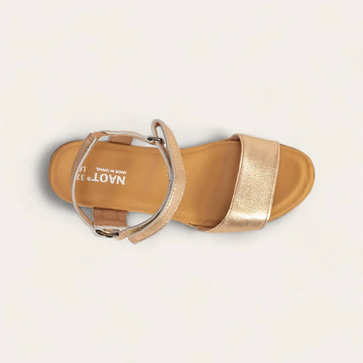 Combinação perfeita de estilo e conforto. Apresenta salto anabela de 7 cm de altura média e design aberto na frente. Completo com tira de velcro no peito do pé e tira traseira de suporte. Confeccionado com a icônica palmilha anatômica de cortiça e látex da Naot, envolta em camurça macia. Moldado ao formato do seu pé para um conforto incomparável. Fiel ao tamanho, com ajuste estreito a médio. Com solado de borracha termoplástica (TPR) para oferecer a altura desejada sem abrir mão do conforto.