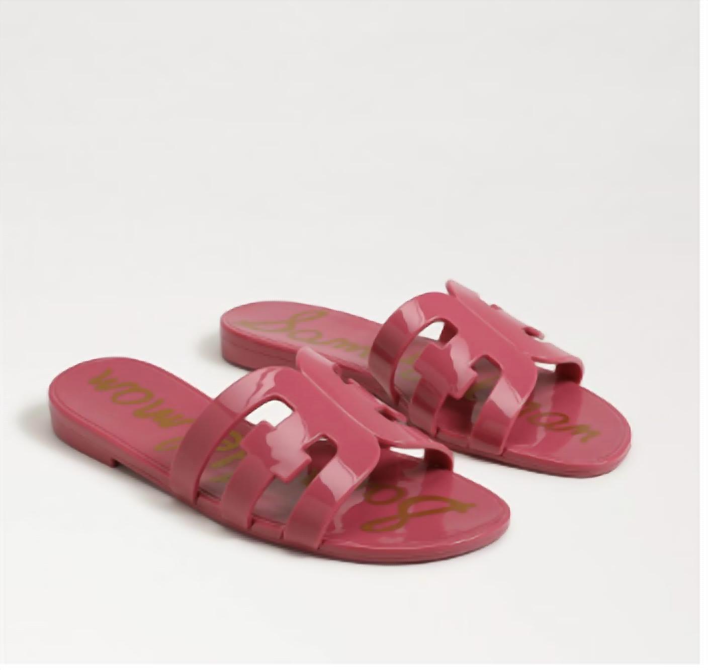 Esta sandália vai levar você do brunch ao jantar e a tudo o mais. Entre no estilo com a Sandália Slide Feminina Bay Jelly da Sam Edelman, com acabamento brilhante que incorpora a tendência elegante e moderna da cor jelly. Estas sandálias minimalistas na marcante cor Summer Rose são perfeitas para ocasiões de primavera, como o Dia das Mães ou uma comemoração de aniversário. Desenhadas com bico redondo confortável e salto baixo de menos de 2,5 cm, são ideais para looks descontraídos e chiques. Originárias de Stuart, Flórida, estas sandálias oferecem um toque de alta costura com um toque casual.
