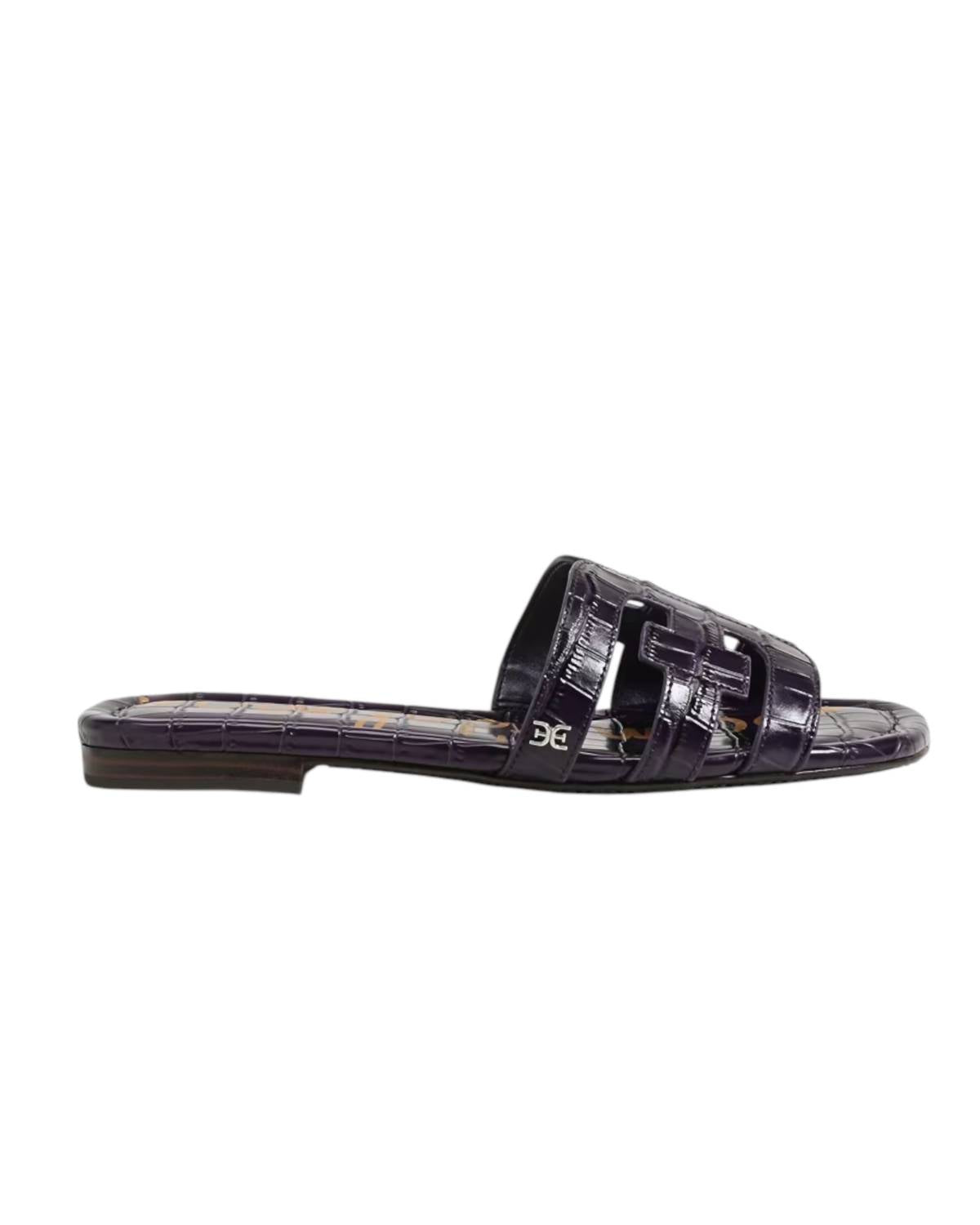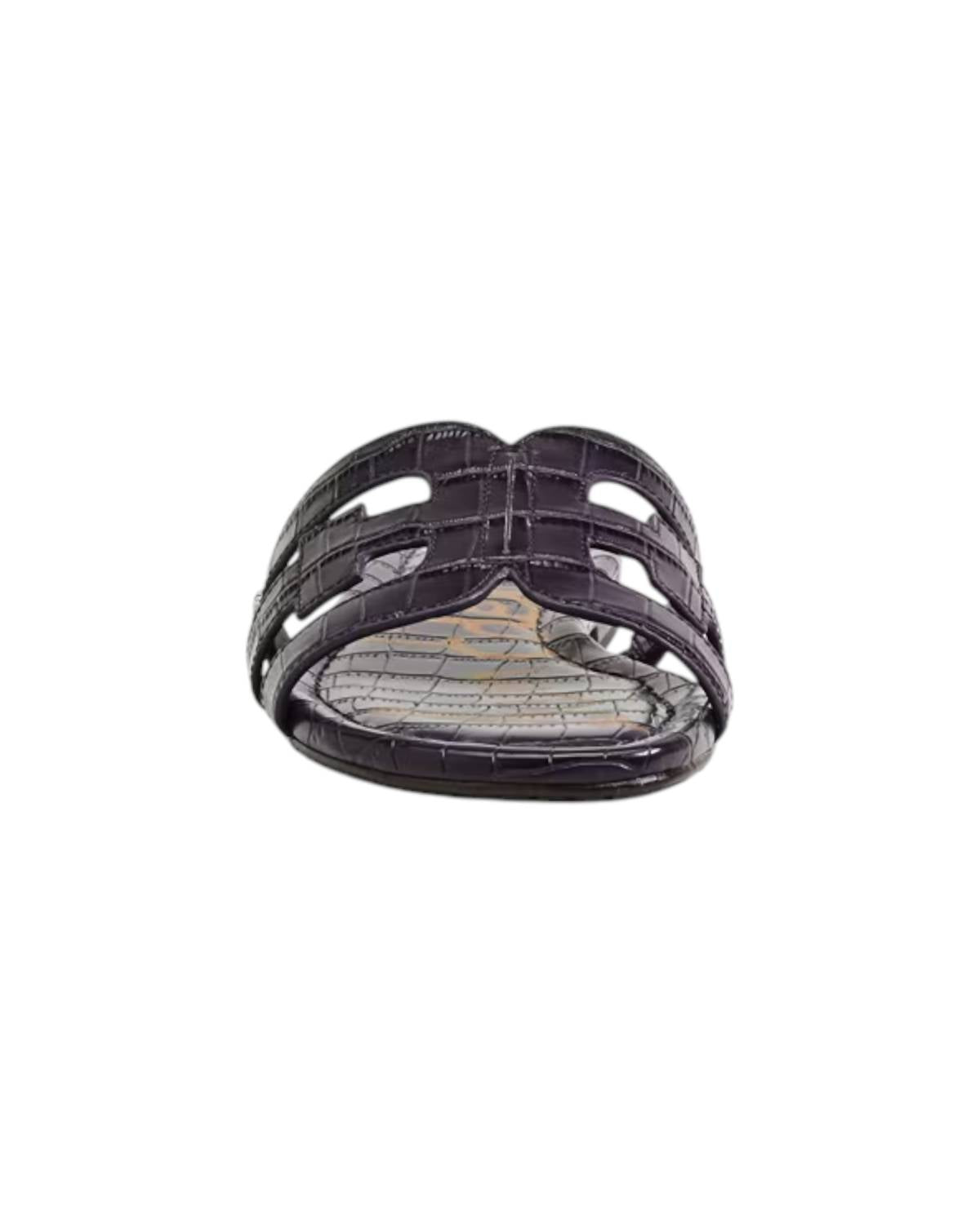 Classicly cute and all-day-wearable. We love this sandal. Step into summer with the Women's Bay Sandal by Sam Edelman, featuring a chic Black Croc design. Crafted from a mix of leather and synthetic materials, these slide sandals offer a sleek open toe and a modest 0.5-inch flat heel, making them perfect for both casual and dressy occasions. Ideal for warm weather, the medium-width design ensures comfort and style from poolside loungers to globe-trotting adventures. Closure: Slip-on.