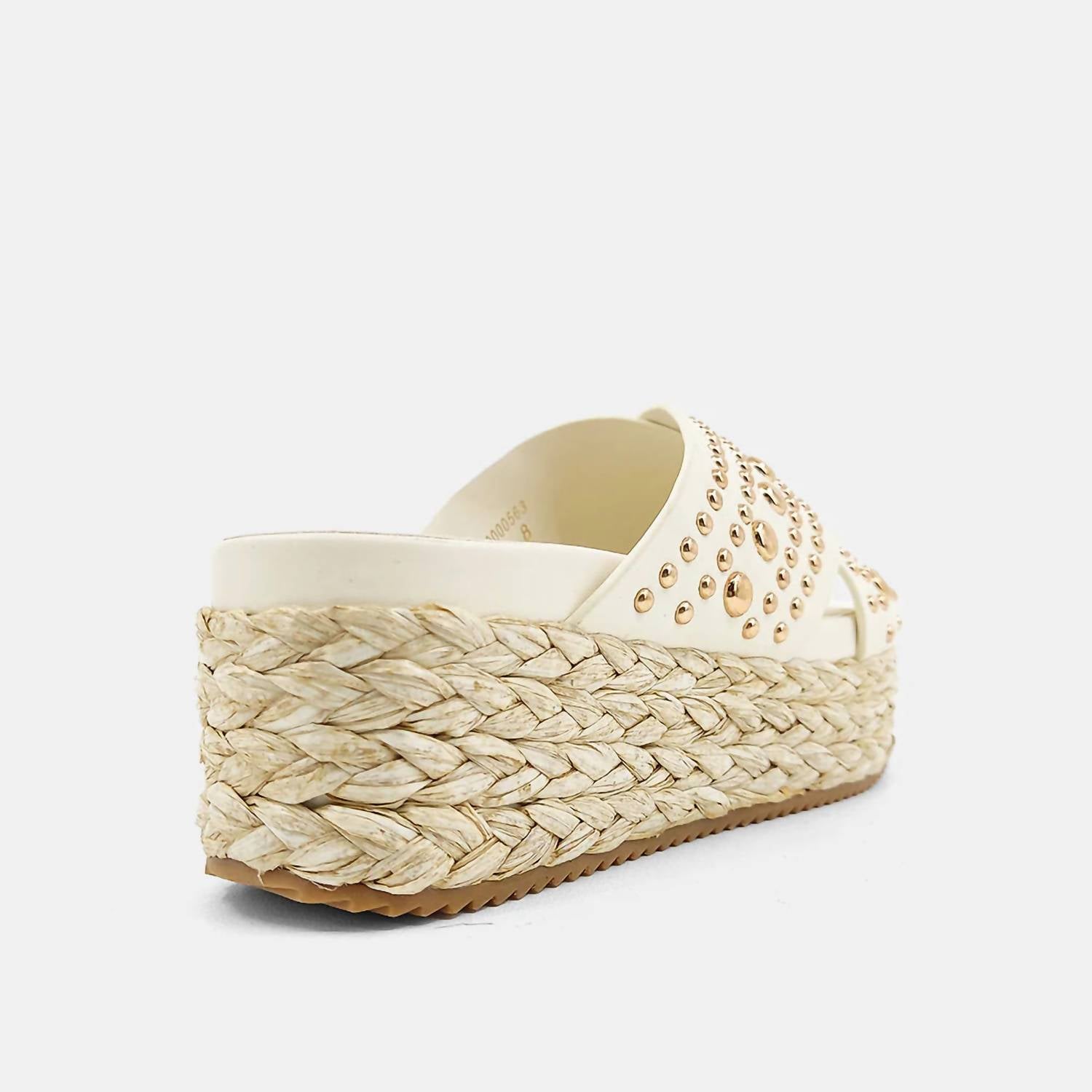 Vestidos esvoaçantes, calças cropped e até macacões... esta sandália combina com todos eles! Entre no verão com as Sandálias Espadrille Anabela Femininas da SHU SHOP, sua escolha para dias de praia e aventuras ensolaradas. Confeccionadas em couro sintético Bone, estas sandálias apresentam um design slip-on chique adornado com tachas metálicas marcantes. Com um salto médio anabela confortável de 6,5 cm a 7,5 cm e bico arredondado, elas combinam estilo e conforto com perfeição. Perfeitas para combinar com tudo, de vestidos a jeans, estas sandálias são um item essencial para o seu guarda-roupa nos dias quentes.