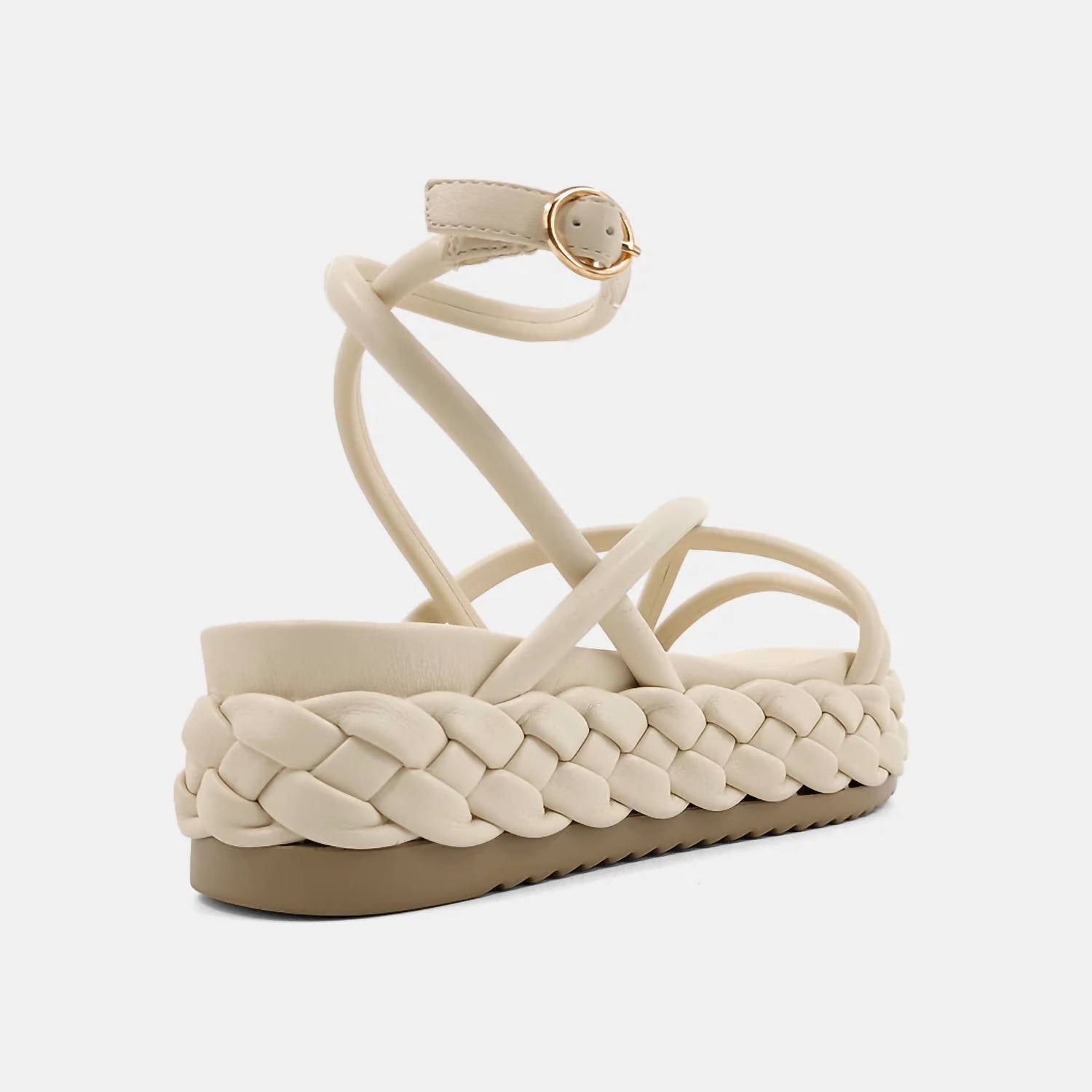 Esta sandália vai levar você do brunch ao jantar e a tudo o mais. Entre no estilo com a Sandália Plataforma Lilith da SHU SHOP, uma adição chique a qualquer guarda-roupa. Estas sandálias brancas apresentam um design flatform marcante revestido em couro sintético, finalizado com uma trança grossa para um visual ousado. Com bico aberto e salto baixo e confortável de 5 cm, são perfeitas para passeios casuais. O fecho por fivela no tornozelo garante um ajuste seguro, enquanto as tiras acolchoadas do cabedal oferecem o máximo conforto. Desenhadas para mulheres e disponíveis na gama de tamanhos adultos.