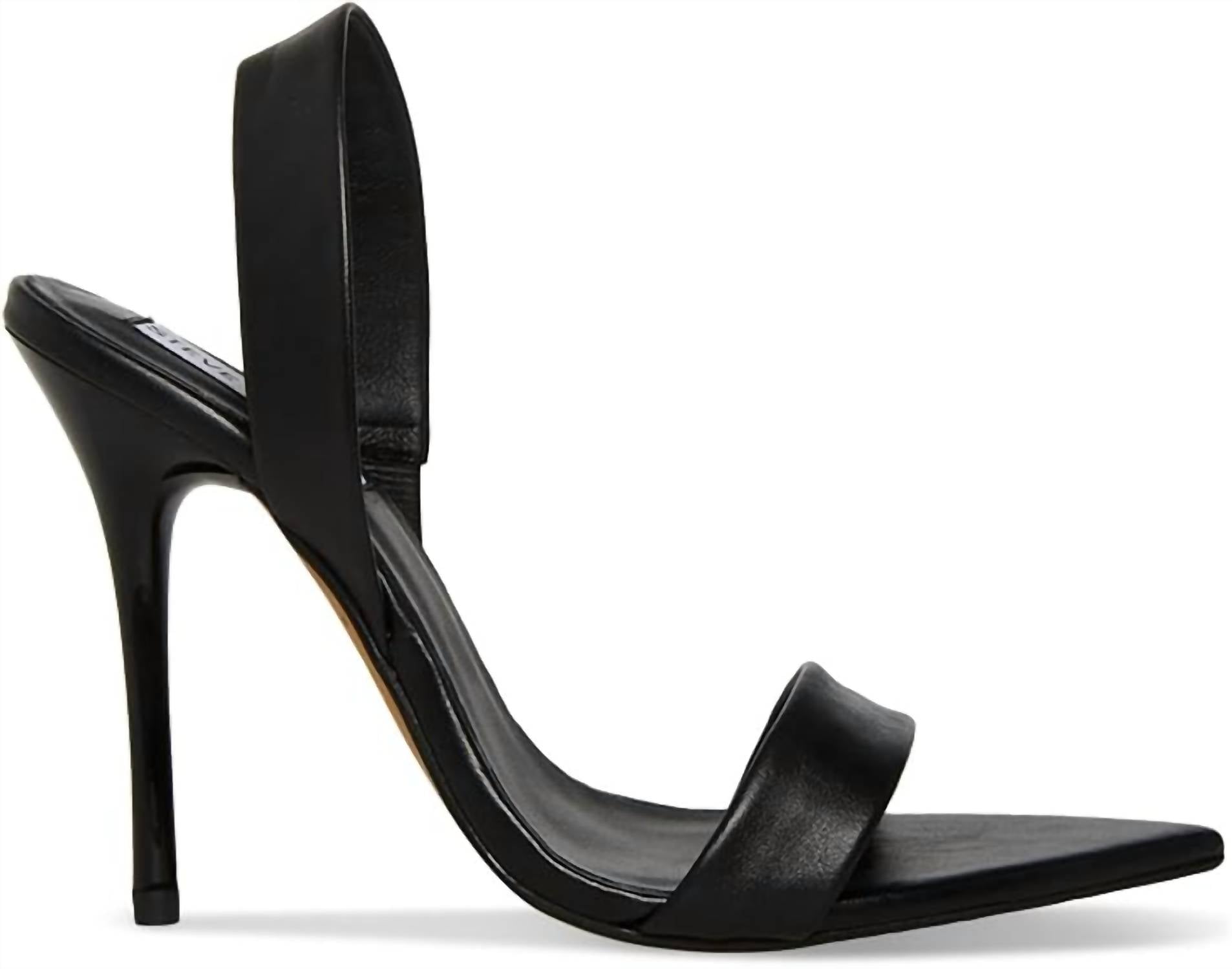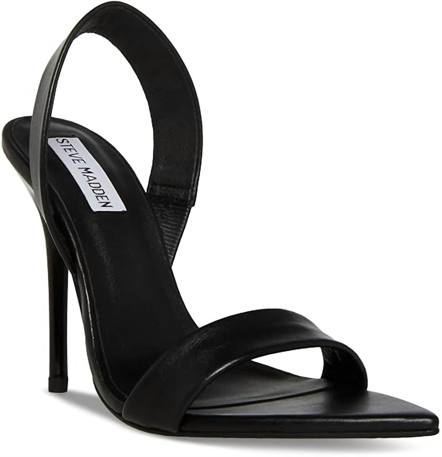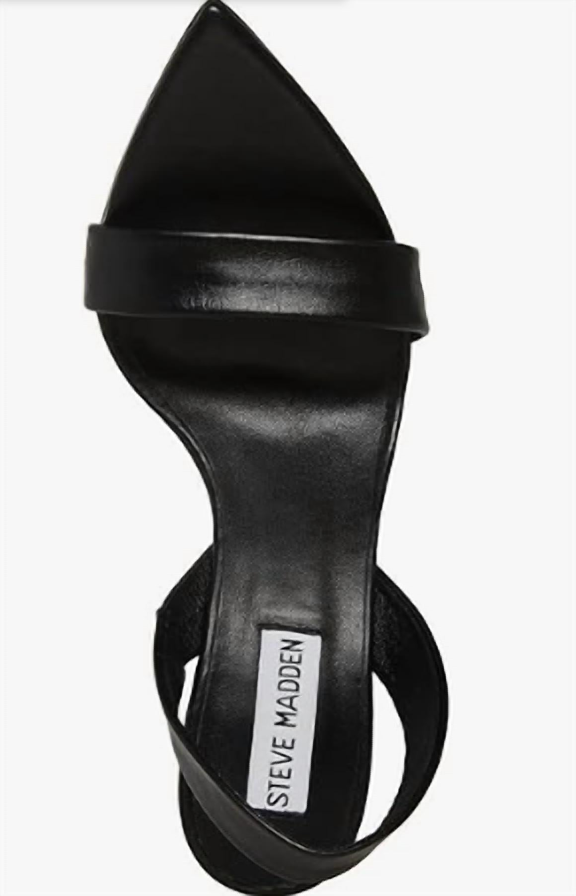Esta sandália vai levar você do brunch ao jantar e a tudo o mais. Apresentamos as Sandálias Femininas Batali da Steve Madden, uma adição chique a qualquer guarda-roupa com sua construção elegante em couro preto, que oferece conforto e estilo. Estas sandálias sofisticadas apresentam um salto agulha alto, com mais de 8,5 cm, criando uma silhueta elegante perfeita para qualquer ocasião. O bico fino adiciona um toque extra de refinamento. Ideal para mulheres adultas que buscam um visual moderno e atemporal.