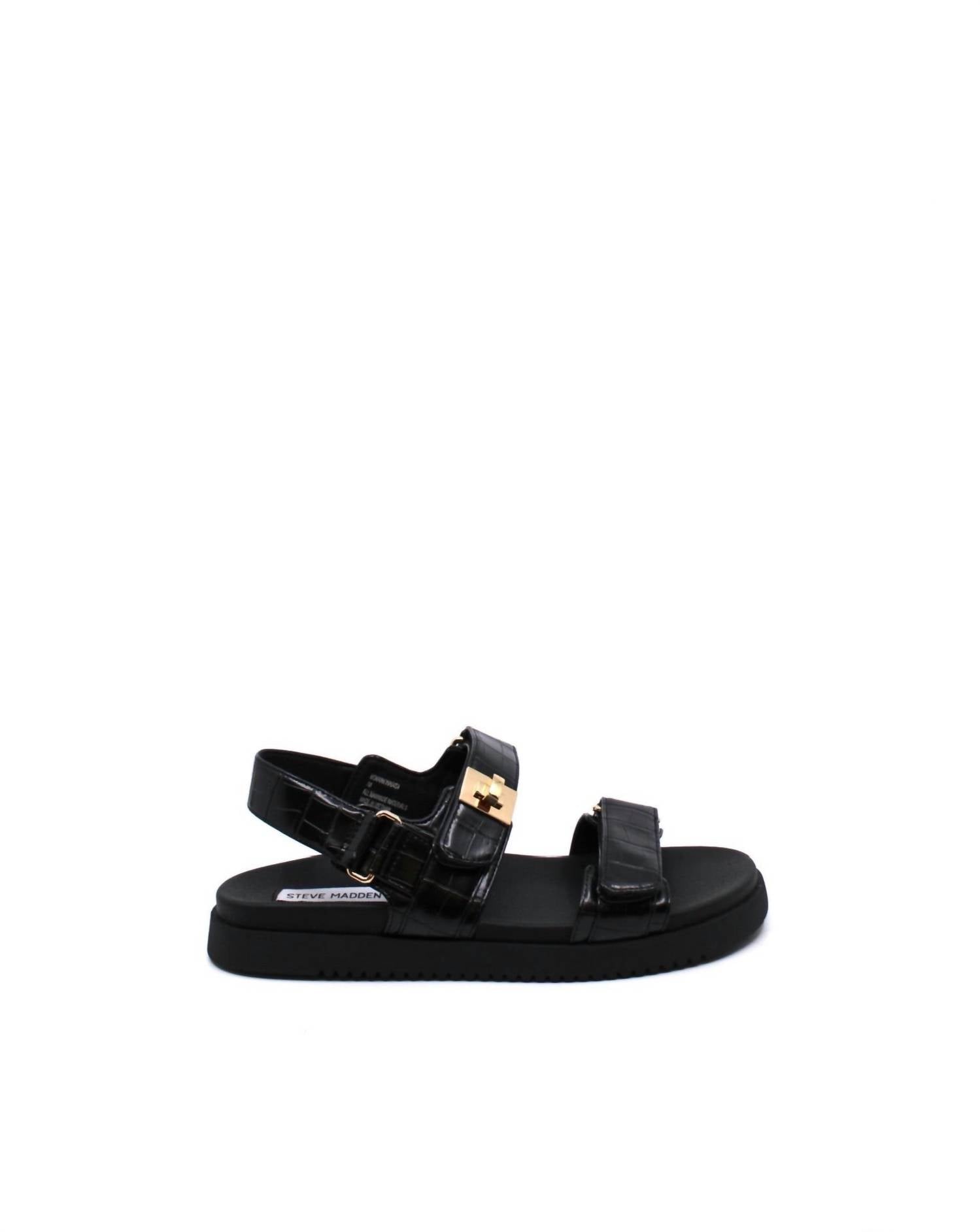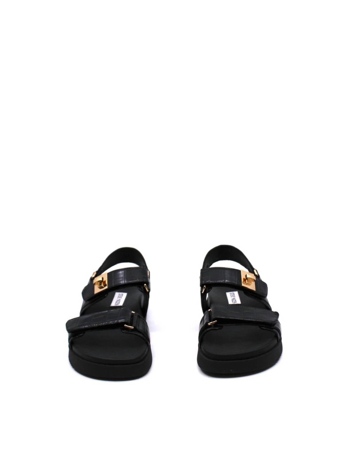 Esta sandália vai levar você do brunch ao jantar e a tudo o mais. Com palmilha moldada e solado plano, o design de couro com três tiras também ostenta ferragens douradas. Fecho ajustável em velcro na tira frontal. Salto de 2,5 cm.