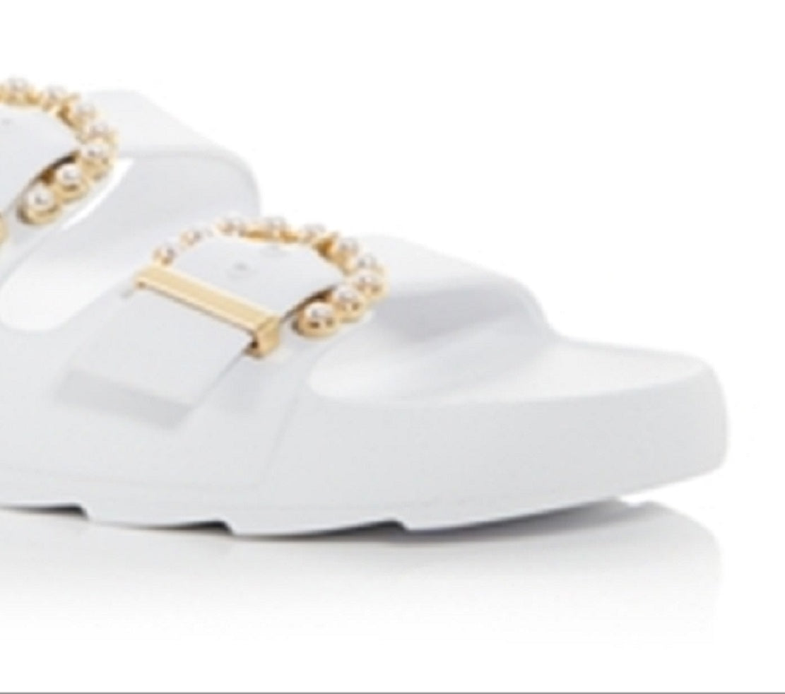 Sandálias femininas Stuart Weitzman com fivela de pérola