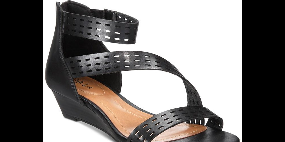 Sandálias femininas Giordi com tiras perfuradas e salto plataforma, pretas, tamanho 9, da Style & CO