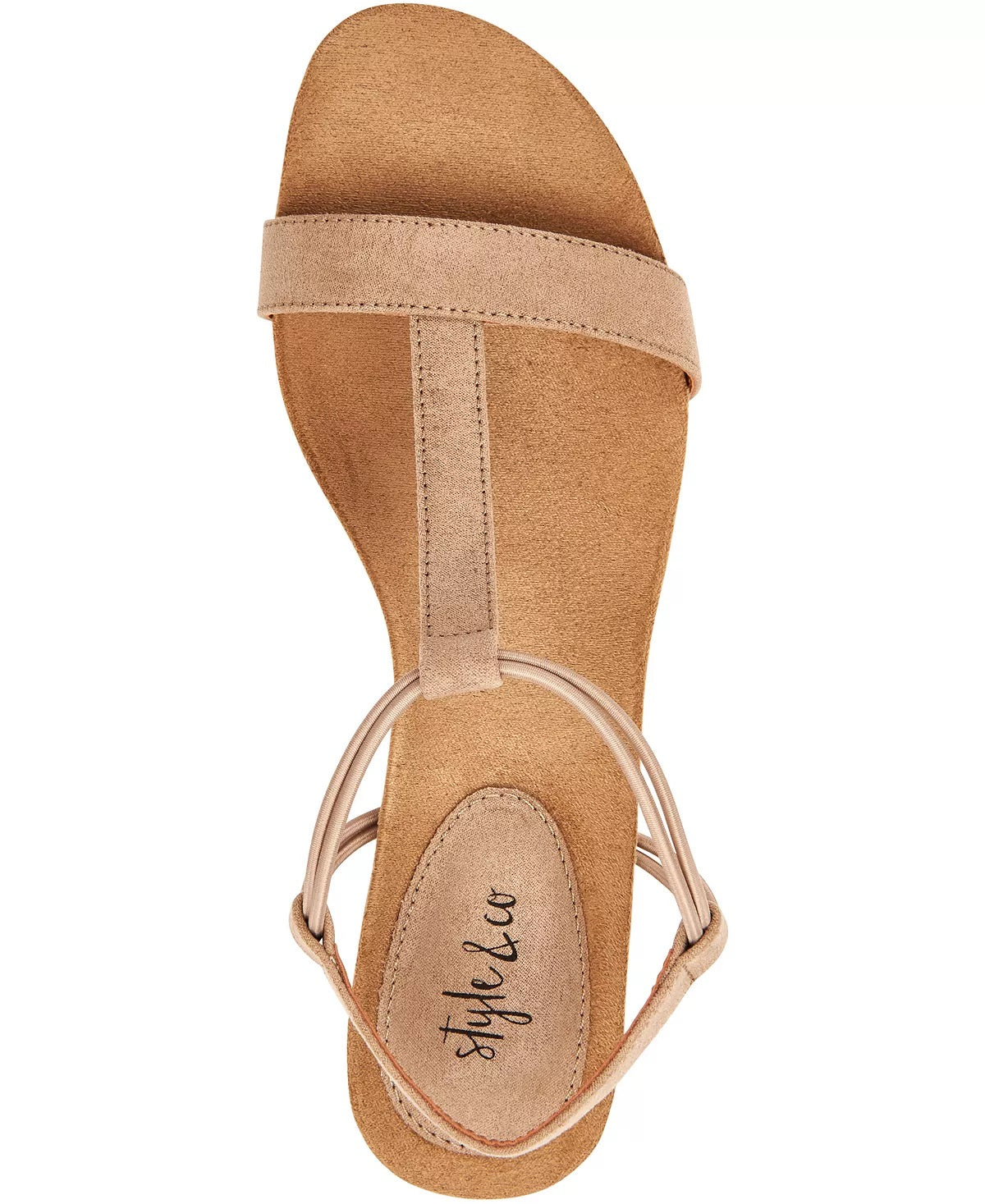 As sandálias Style & Co Mulan 2 apresentam um cabedal sintético com um | O solado sintético proporciona tração e desgaste duradouros