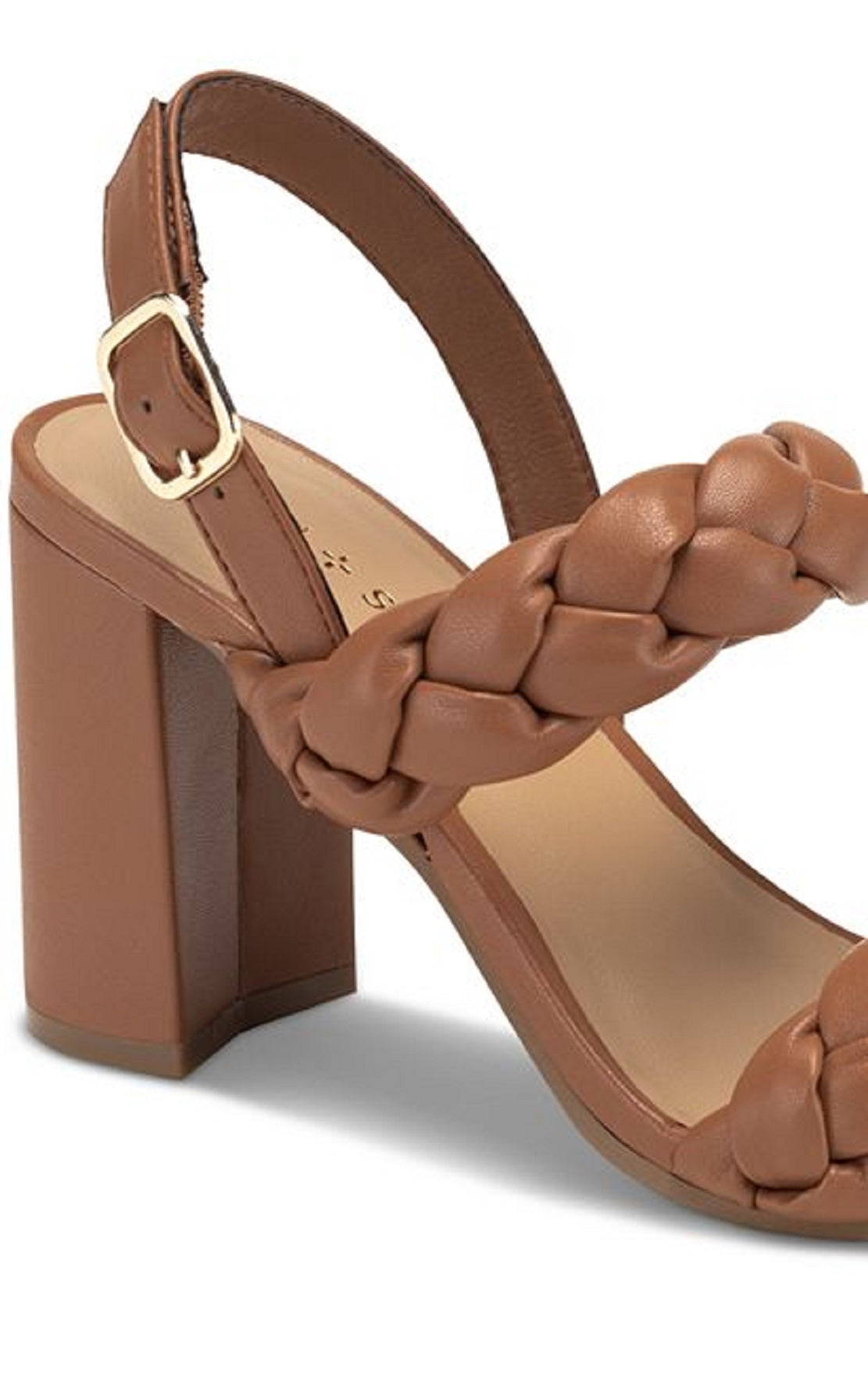 Tiras grossas trançadas e saltos robustos em bloco combinam com seus looks favoritos com as sandálias Cherii da Sun + Stone. | Salto bloco 3-3/4 | Sandálias sociais estilo slingback com bico redondo e fecho de fivela ajustável | Detalhes em tira trançada | | Cabedal sintético; forro sintético; sola de borracha | Importado