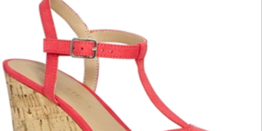 Sandálias femininas Sun Stone Jamie com tiras em T e plataforma, tamanho 5 M, vermelhas