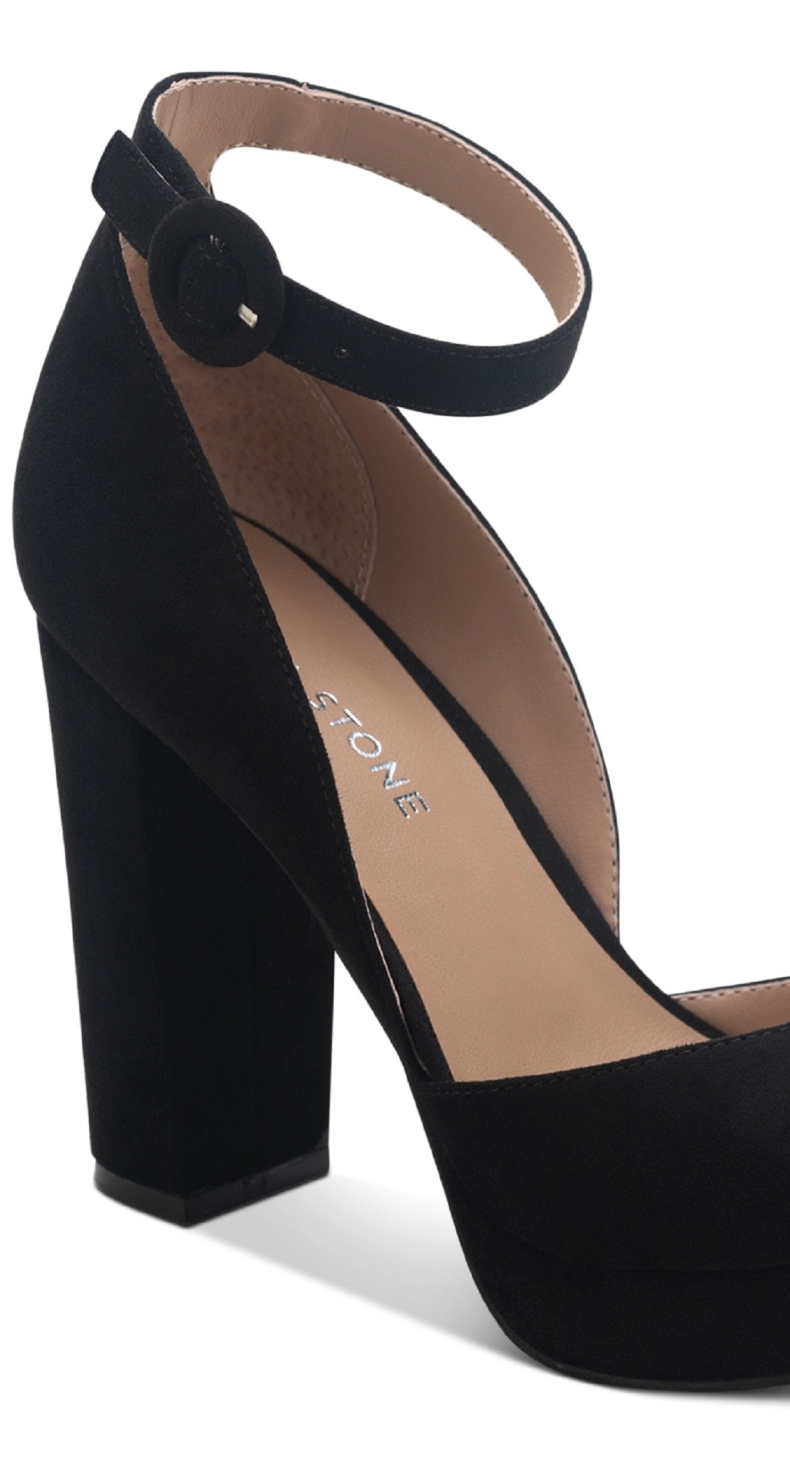Salto 4 blocos | Sandálias sociais com bico redondo e tira no tornozelo, fecho de fivela ajustável | Palmilha acolchoada e forro respirável para maior conforto; sola antiderrapante para maior tração | Cabedal em tecido de fibra ou sintético; forro sintético; sola de borracha | Importado