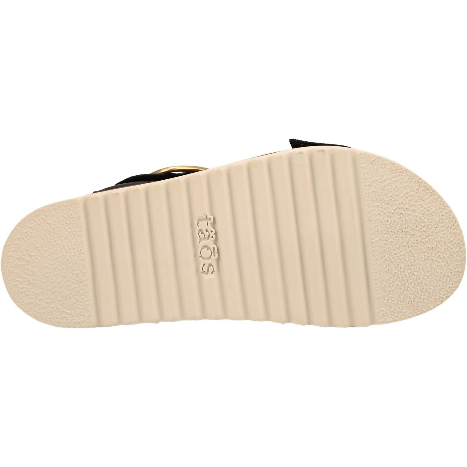 Flowy dresses, cropped pants, and even jumpsuits... this sandal works with them all! Step into comfort with the Taos Women's On The Double Sandals, designed for style and ease in sleek black leather. These sandals feature an open toe shape with a flat heel height of 1.25 inches, making them ideal for a minimalist summer look. The leather upper and soft leather lining ensure a great feel against your skin, while arch and metatarsal support along with forefoot cushioning offer all-day comfort. The sandals are finished with a flexible, durable rubber outsole and a natural cork-latex midsole, perfect for any beach day.