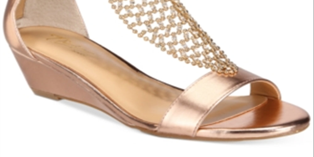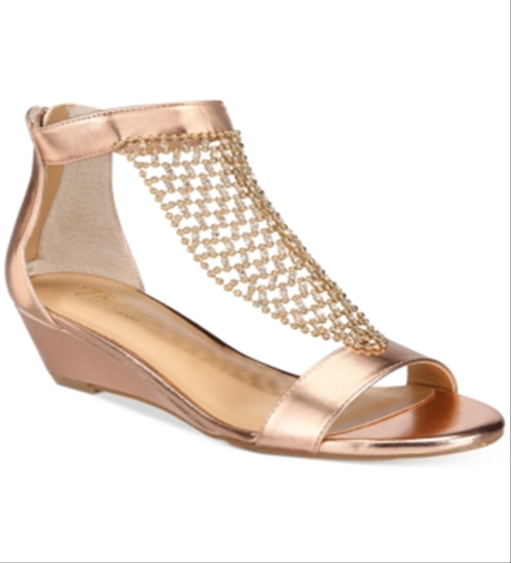 Thalia Sodi acrescenta brilho e glamour a estas sapatilhas Tibby com um design exclusivo de tira em T, feito de malha dourada com strass brilhantes. | Salto anabela 1-1/2 envolto | Sandálias anabela redondas, abertas nos dedos, com tira em T e tira no tornozelo; fecho de zíper na parte de trás | Malha dourada com strass na tira em T | Disponível nos tamanhos M (M) e G (L) | | Cabedal sintético; sola sintética