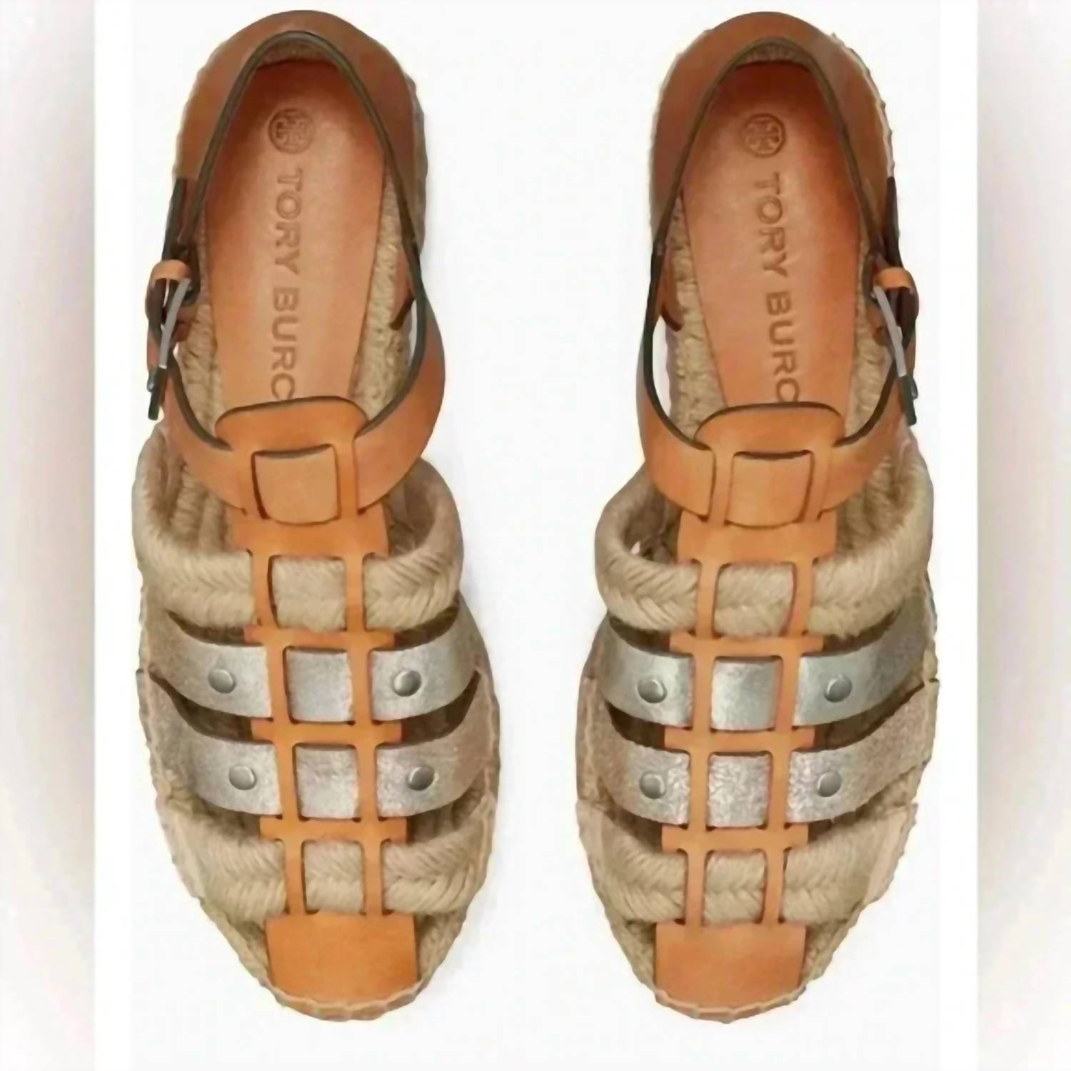 Saia na moda com a Sandália Fisherman Flatform Feminina da TORY BURCH, uma adição chique ao seu guarda-roupa para as férias de primavera. Estas sandálias vêm em um elegante tom Brandy Silver, incorporando a tendência boho chic com bico aberto e salto plataforma. Com salto plano de 2,5 cm ou menos, elas oferecem conforto e estilo para as mulheres. Perfeitas para abraçar o glamour descontraído da sua próxima viagem.