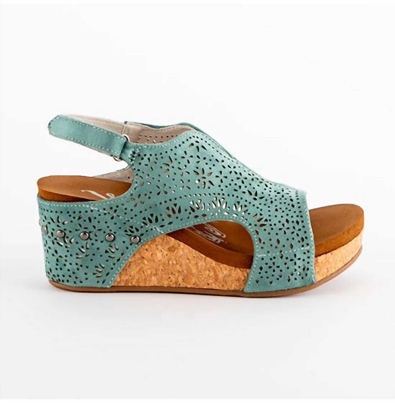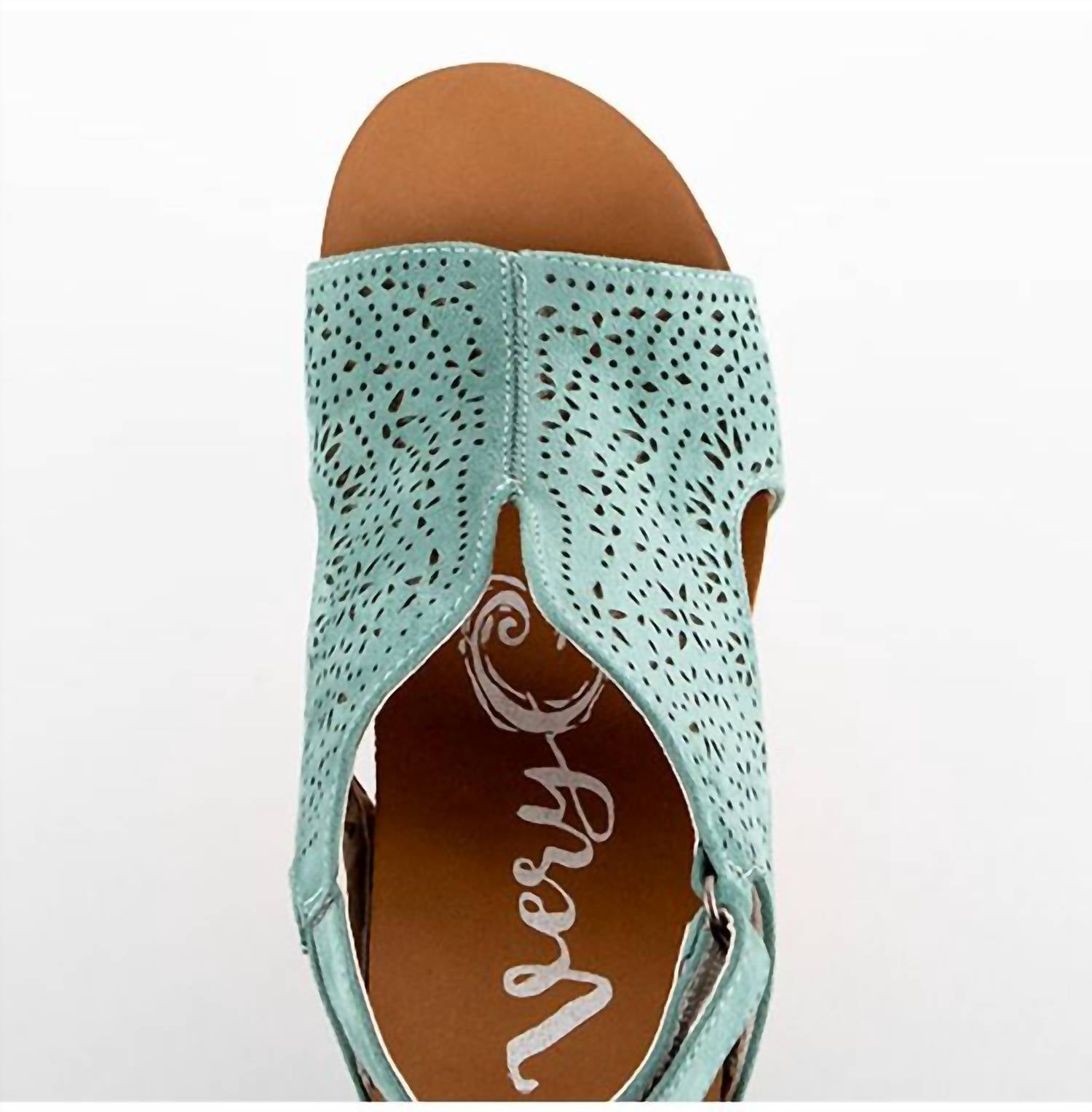 Esta sandália vai levar você do brunch ao jantar e a tudo o mais. Apresentamos as Sandálias Anabela Freefly da Very G, uma fusão perfeita de estilo e conforto, projetadas para mulheres. Confeccionadas em camurça sintética macia em um deslumbrante tom turquesa, estas sandálias apresentam detalhes intrincados cortados a laser para respirabilidade e um toque arejado. As sandálias anabela apresentam um prático fecho de velcro e um salto anabela de altura média de 7,6 cm, apoiado em um solado marshmallow para amortecimento superior. Ideais para uso diário, elas combinam design moderno e praticidade sem esforço.
