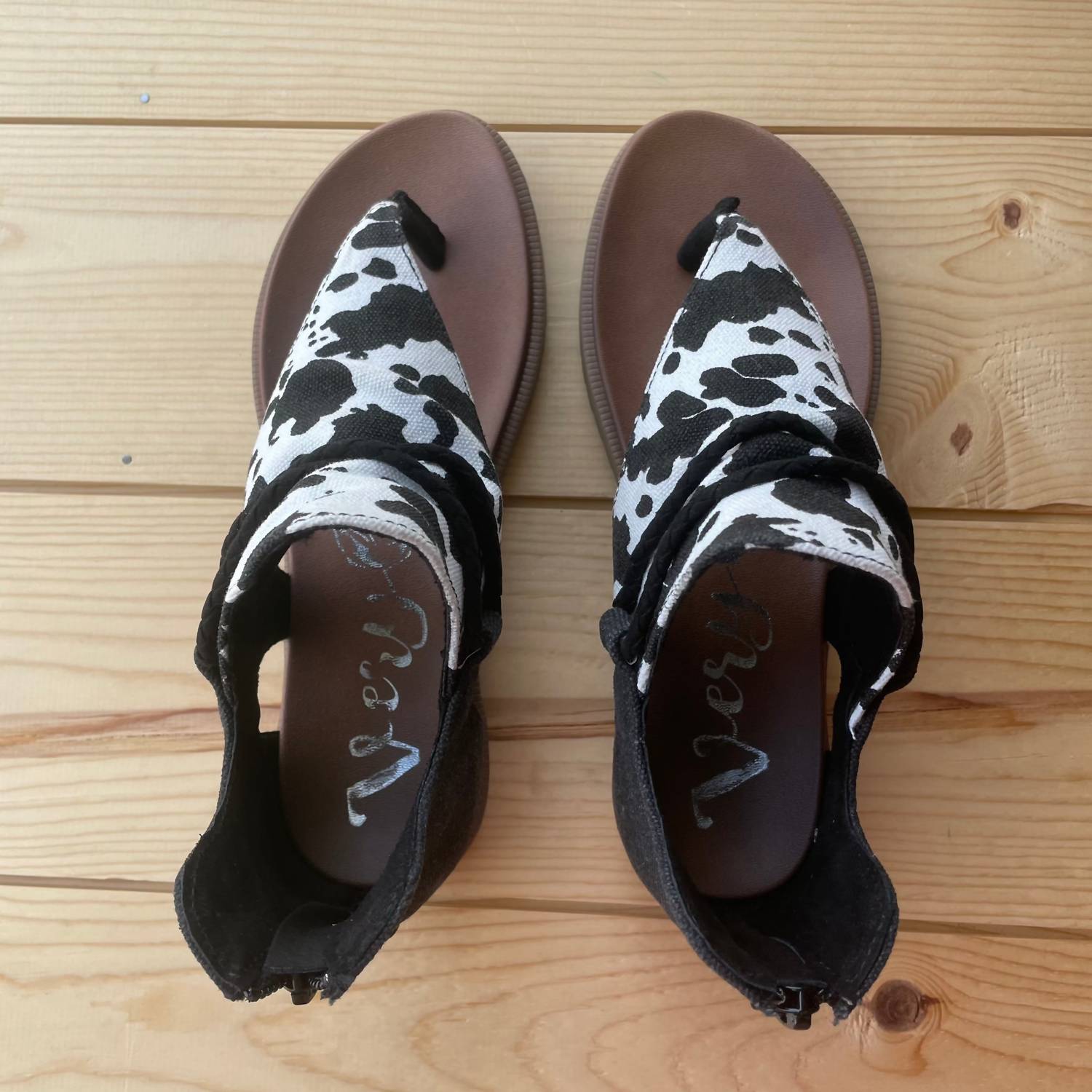 Clássico e fofo, perfeito para usar o dia todo. Adoramos esta sandália. Entre em sintonia com o estilo e o conforto com a Sandália Feminina "Angelika 2" Cow da Very G. Com uma estampa marcante de vaca em preto e branco, estas sandálias são a escolha ideal para as férias ou para as suas aventuras diárias de verão. Com bico aberto e salto baixo, elas incorporam um solado acolchoado e um detalhe de fivela chique para um toque extra de estilo. Perfeitamente maximalistas, estas sandálias slip-on têm um tamanho real, oferecendo conforto e estilo para adultos.