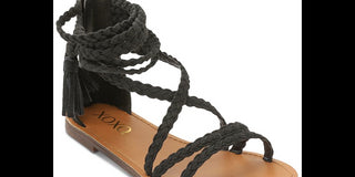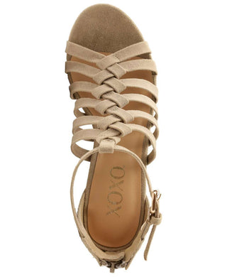 Sandálias gladiadoras trançadas de camurça sintética Cancun XOXO femininas, tamanho 9,5M, bege