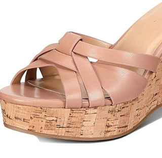 Sandálias femininas Thalia Sodi com bico redondo e salto anabela, tamanho 10 M, marrom