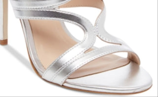 Sandálias de salto alto Steve Madden Sidney com tira no tornozelo 803 cinza prateado tamanho 5,5 M