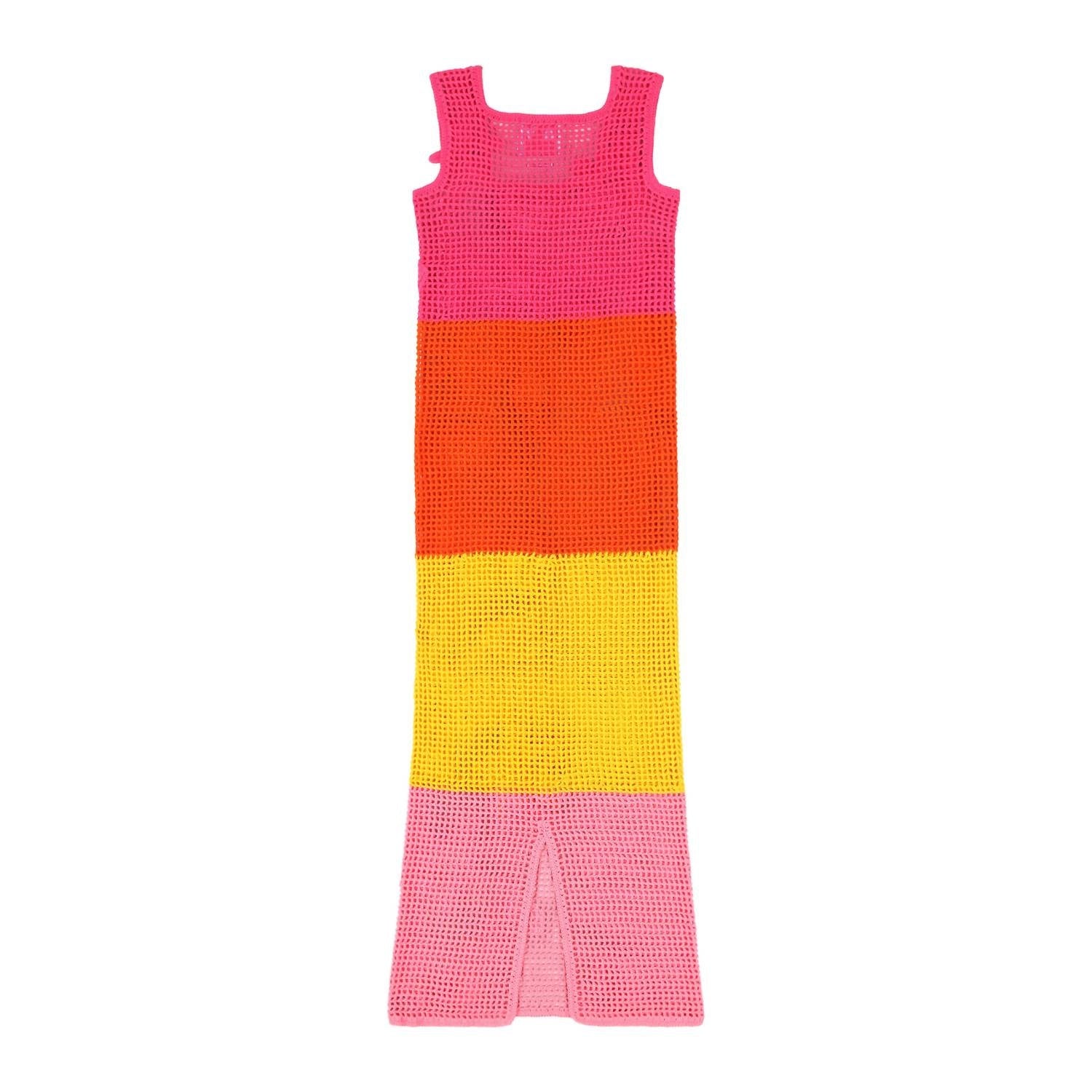 Embrace timeless elegance with the Women's Sea Treasure Dress by ANNAISS YUCRA, an exquisite piece from the La Dolce Lima collection. This sleeveless, maxi-length coverup features a body-hugging sheath silhouette, beautifully hand-crocheted from 100% organic cotton in soft pink tones. Carefully crafted in Perú, each dress embodies the meticulous work of skilled artisans, taking approximately five days to complete. Care for this unique piece by hand washing in cold water with mild detergent; avoid spin, lay flat to dry, and steam only.