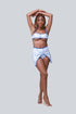Elevate your beach day ensemble with the Sophia Cover Up Mini Skirt from Porshia By Porshia Banks, designed in a chic white/blue patterned polyester. This high-rise swim skirt is perfect for the summer season, offering full coverage with a stylish front split that adds a touch of allure. Ideal for layering over your favorite bikini or one-piece, this lightweight coverup is crafted for comfort and movement. Designed for a stylish transition from beach to bar, it's your go-to for any shoreline occasion.