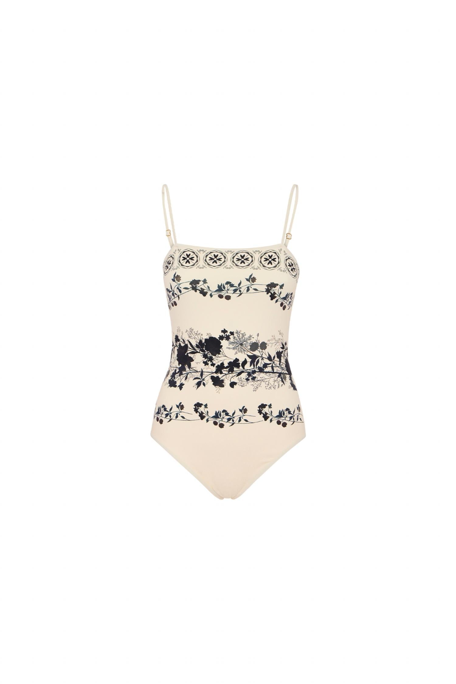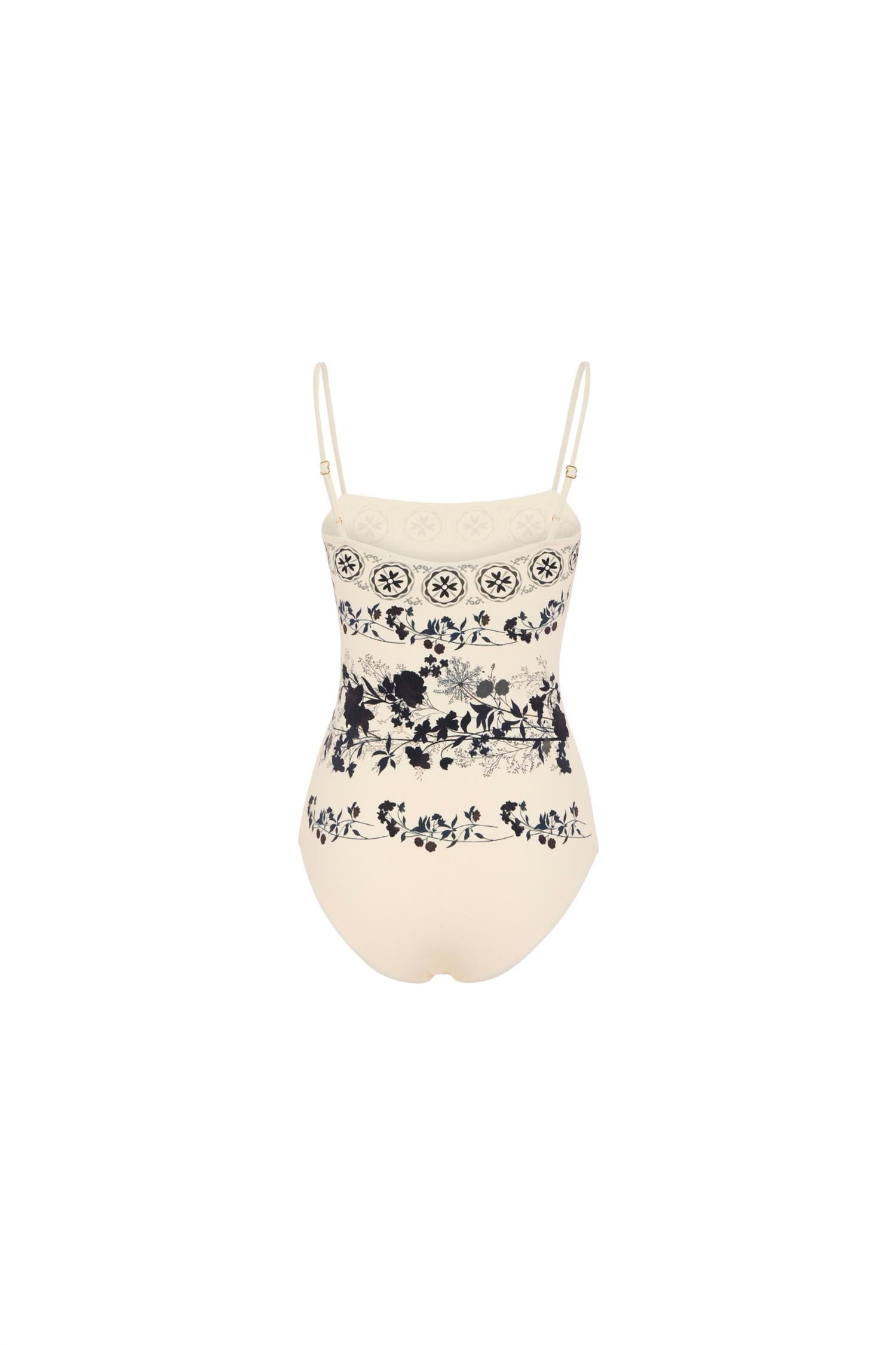 Introducing the Women's Elle Swimsuit by La DOUBLEJ, a sophisticated piece perfect for your next vacation. This stunning swimsuit features a floral Mirage print with a classic bikini style and a square neckline and slim spaghetti straps for an elegant touch. Made in Italy with 76% Polyamide and 24% Elastane, this stylish swimwear offers classic coverage in a tankini style. Care is simple with machine wash instructions, making it your go-to for Boho Chic spring escapes.