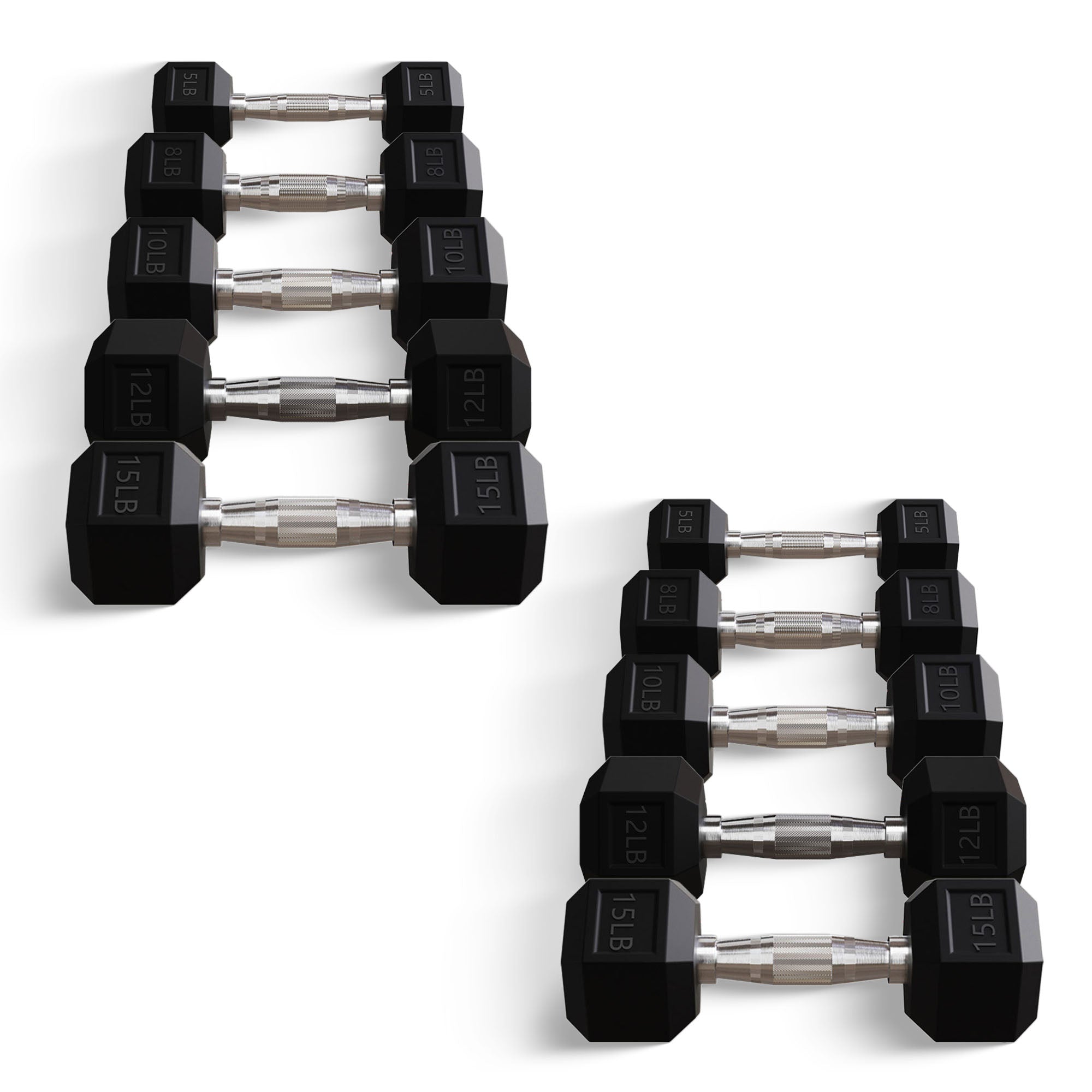 - Ideal para exercícios de corpo inteiro e exercícios específicos para grupos musculares, este conjunto vem com 5 pares de halteres de 5, 8, 10, 12 e 15 libras, adequados para iniciantes e entusiastas do fitness.