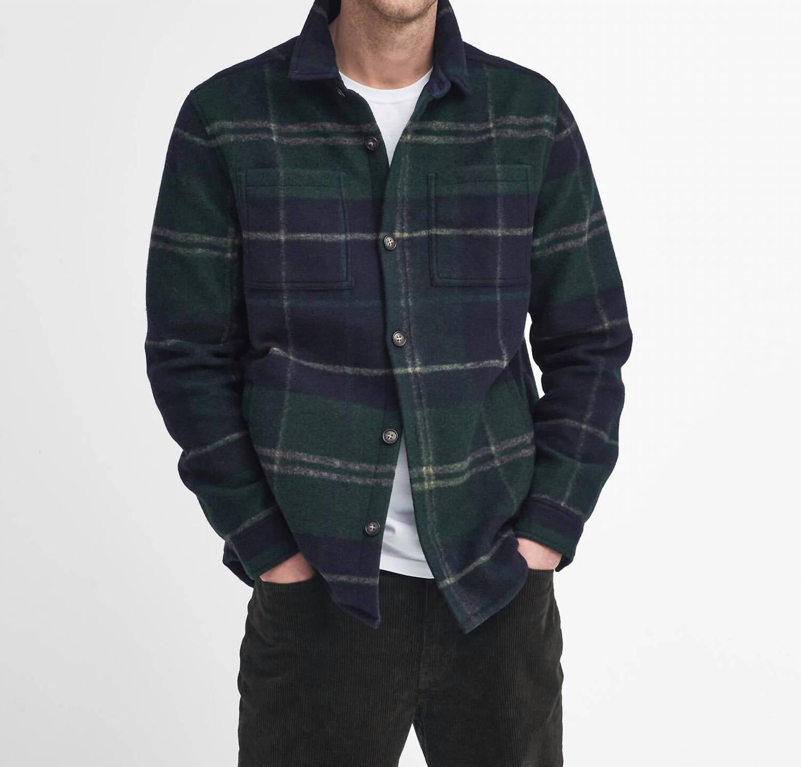 Add a touch of classic style to your cool-weather wardrobe with this tailored check overshirt, featuring a sophisticated green tartan pattern. Crafted from durable 100% polyester, this long-sleeve piece combines the polished look of a traditional shirt with the functional utility of a lightweight jacket. The design includes a full button closure and practical pockets, making it an ideal layering staple over t-shirts or sweatshirts for added warmth and texture. Designed for easy maintenance with machine-washable care, this versatile overshirt offers a refined yet functional silhouette that seamlessly bridges the gap between casual and formal seasonal wear.