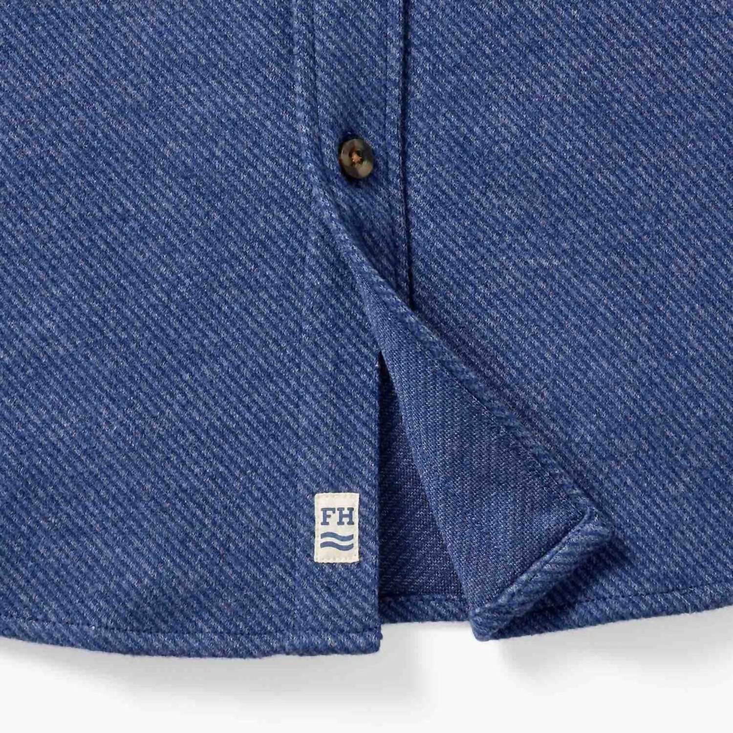 Confeccionada em sarja azul-marinho para conforto excepcional. Com mangas longas e um caimento moderno e descontraído, a peça possui tecido elástico em 4 direções, composto por 66% poliéster reciclado, 28% rayon e 6% elastano. Oferece um fecho de botão clássico com bolsos adicionais com aba e botões no peito para maior funcionalidade. Bainha estilo camisa. Ideal para homens que buscam uma camada respirável e de peso médio para os dias mais frios.