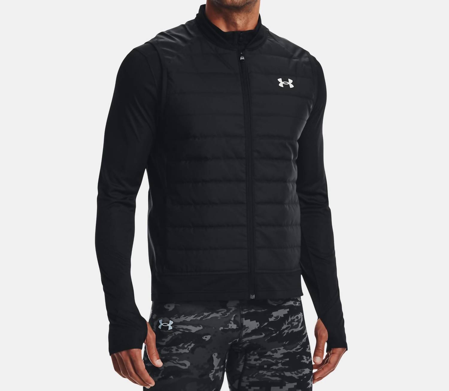 Apresentamos o Colete de Corrida Storm Insulate da UNDER ARMOUR, um item essencial na cor preta e elegante para homens ativos que buscam o máximo em conforto e proteção. Este colete sem mangas é confeccionado em 100% poliéster com tecnologia UA Storm para repelir a água e manter a respirabilidade. Um tecido leve e à prova de vento, combinado com isolamento sintético de 80g, proporciona aquecimento estratégico sem volume, complementado por uma gola de malha macia para maior elasticidade. Equipado com bolsos para as mãos com zíper e um bolso interno para mídia no lado direito, este colete é perfeito para corridas com pouca luz graças aos seus detalhes refletivos. Cuidados: Lavar à máquina e secar na secadora. Fechamento: Fecho de zíper.