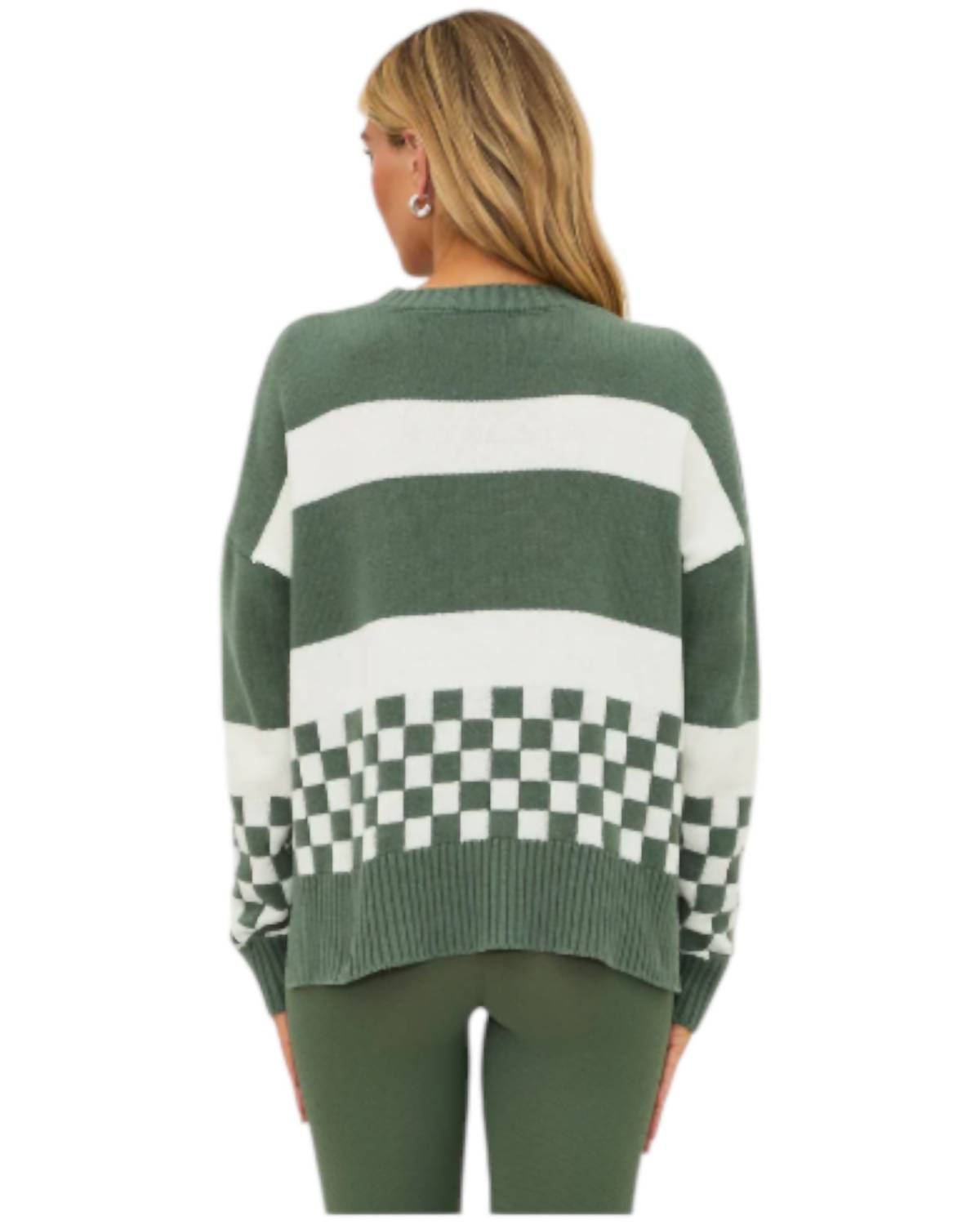 Adote um estilo despojado com o suéter Callie da Beach Riot, uma gola redonda oversized com um alegre padrão xadrez verde-oliva e branco. Este suéter aconchegante de manga comprida é confeccionado em malha macia com 60% algodão e 40% acrílico. Fechamento: Puxe para vestir. Cuidados: Lavar à mão. Perfeito para combinar com seu jeans favorito para um look descontraído.