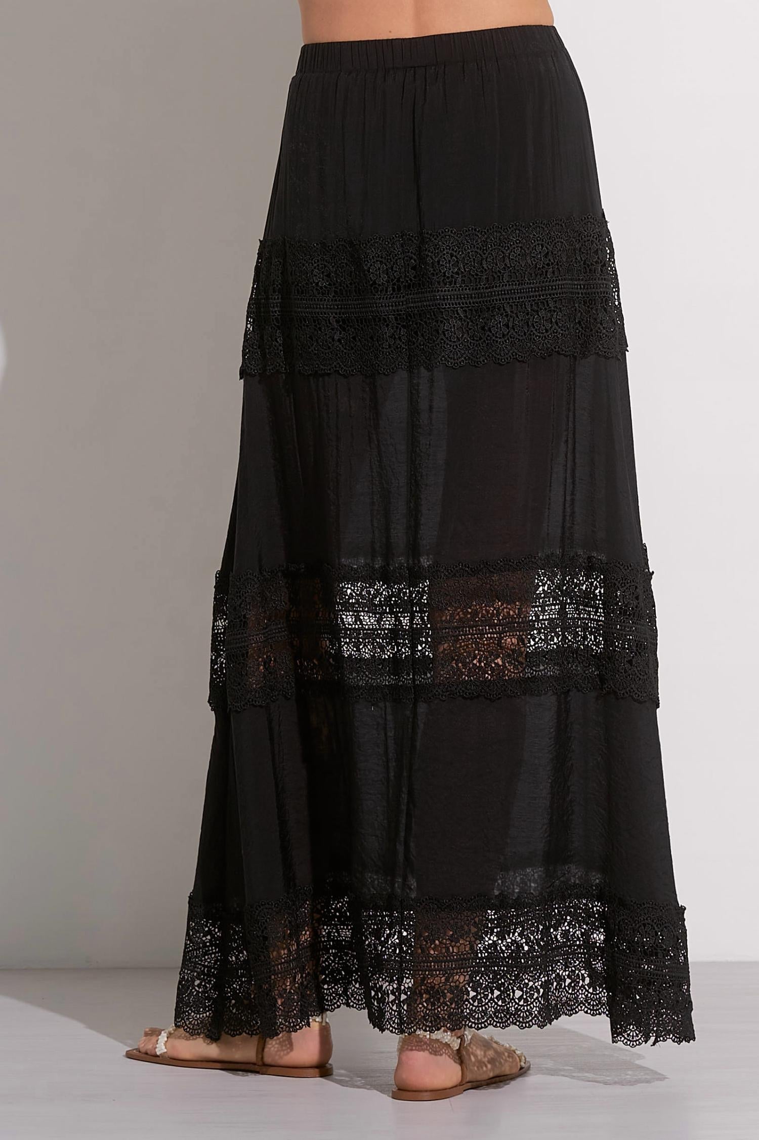 Quem não ama uma boa saia longa? A Saia Longa de Crochê ELAN Vera preta é uma peça de inspiração boêmia que você vai adorar nesta temporada. Esta saia longa apresenta detalhes em renda e crochê, exalando um toque feminino. É composta por uma mistura de viscose (50% Viscose, 30% Poliéster, 20% Poliamida) com forro 100% Poliéster e veste facilmente com seu cós elástico. Feita para mulheres e importada, esta saia estampada combina estilo e conforto sem esforço.