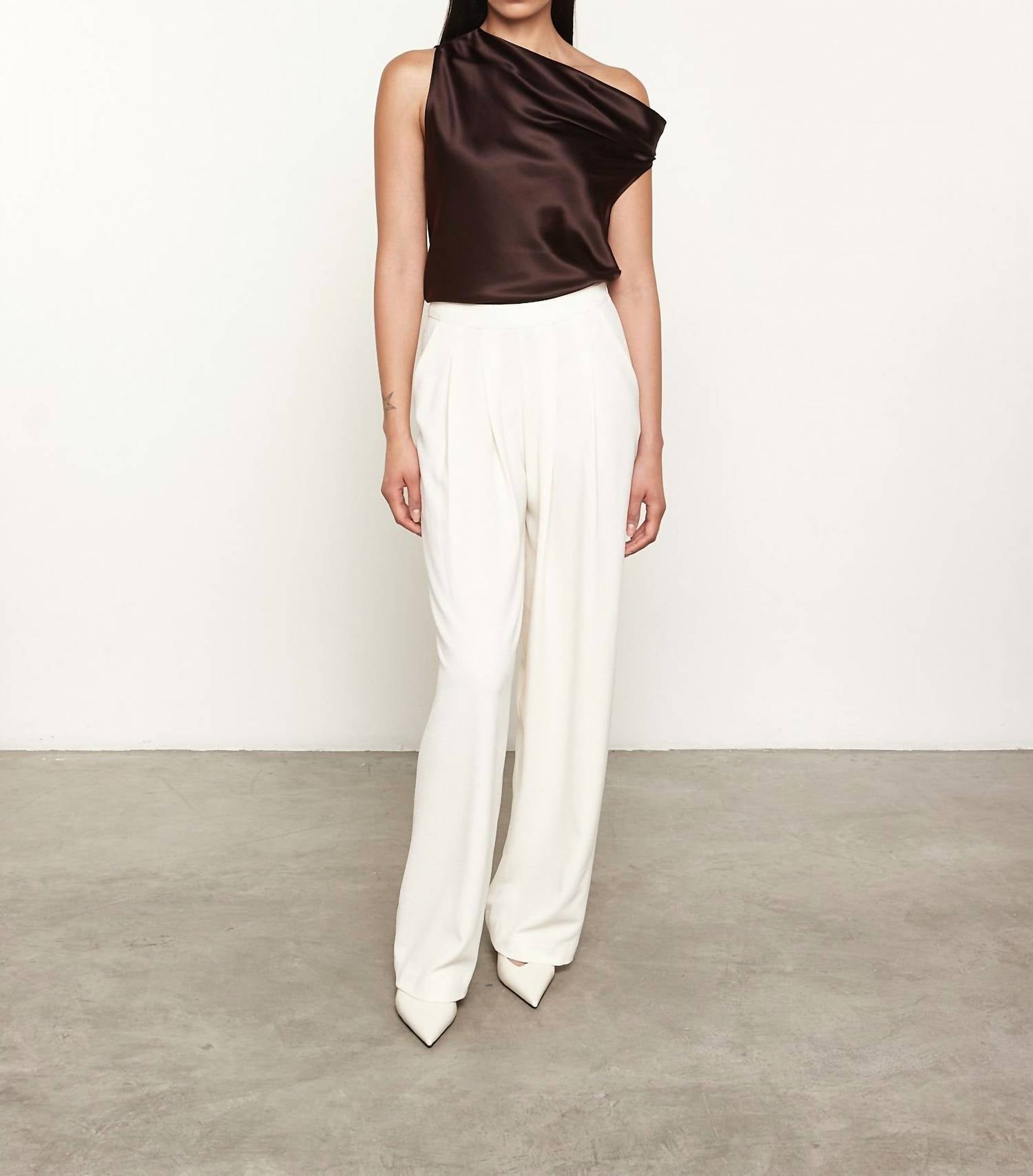 Uma blusa versátil que pode ser usada do escritório ao jantar! Descubra nosso novo top ombro a ombro com decote enviesado, confeccionado em seda pura e com caimento suave. Use-o sozinho ou combine com nossa saia longa de seda para um look formal à noite.