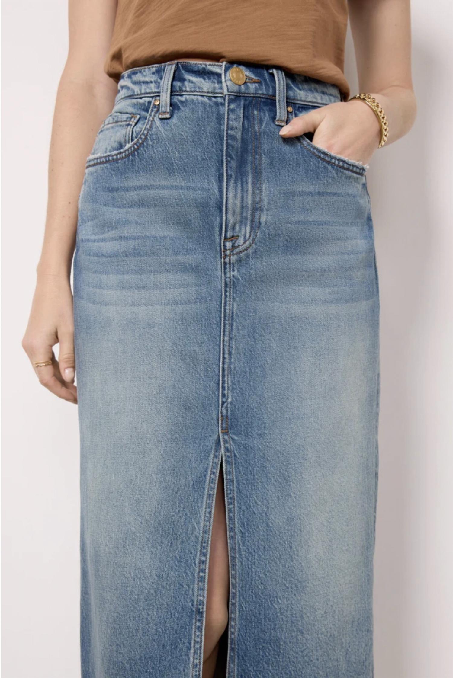 Eleve seu guarda-roupa jeans com a Saia Midi Jen da KUT FROM THE KLOTH, com uma fenda frontal estilosa e bainha crua em uma versátil lavagem azul desbotada. Confeccionada em um jeans confortável com mistura de algodão, composto por 80% algodão, 19% liocel e 1% elastano, esta saia tem um comprimento generoso de 84 cm. Com um prático fecho de zíper, ela combina estilo e funcionalidade com perfeição. As instruções de cuidado recomendam lavar à máquina com água fria, secar na horizontal e passar a ferro em temperatura baixa, lavando a peça do avesso.