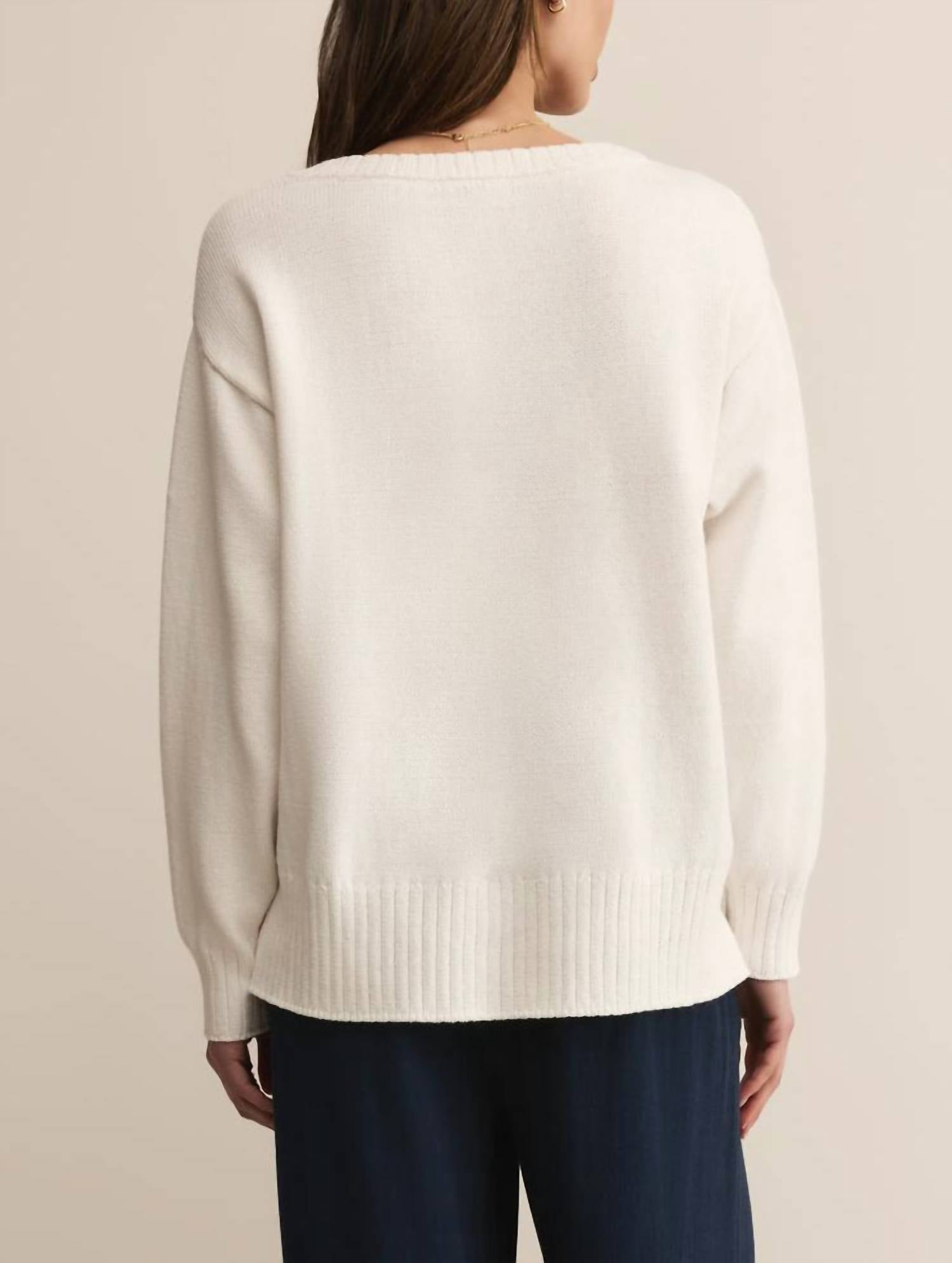 You'll be reaching for this comfy and classic v-neck sweater all season long. Experience the minimalist charm of the All Around V-Neck Sweater by Z Supply, offered in classic white for a chic look. Boasting long sleeves, this solid pattern sweater is made from a 100% cotton blend for lightweight comfort and features a convenient pull-on closure. Relaxed fit, midweight, making it perfect for fall holiday parties. Care for this garment by hand washing and laying it flat to dry.