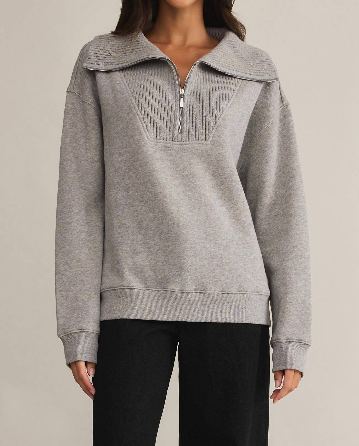 Cozy fabric, impeccable design - Meet the sweatshirt that you'll never want to take off. Introducing the Sonata Fleece Sweatshirt by Z Supply, your go-to cozy piece in Classic Heather Grey. This long sleeve sweatshirt is crafted from a Cotton Fleece blend of 80% Cotton and 20% Polyester, ensuring midweight comfort with a relaxed fit and oversized collar. Half zip. Machine wash cold on a gentle cycle and hang to dry. Model is 5'9" and is wearing a size small.