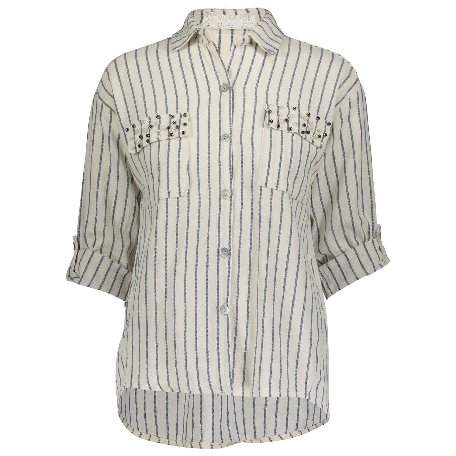 Uma camisa clássica de botões que nunca sai de moda. Apresentamos a Camisa Listrada Giovanna da Guadalupe Design, uma escolha chique e sofisticada para o trabalho ou para festas de inauguração. Esta camisa feminina abotoada apresenta mangas até o cotovelo e gola clássica, exibindo uma estampa listrada atemporal em azul. Confeccionada em 100% algodão, esta camisa foi projetada para conforto e praticidade, com fecho prático de botões e bolsos. Para cuidados, lave na máquina com água fria, seque em temperatura baixa, passe a vapor e lave as cores escuras separadamente.
