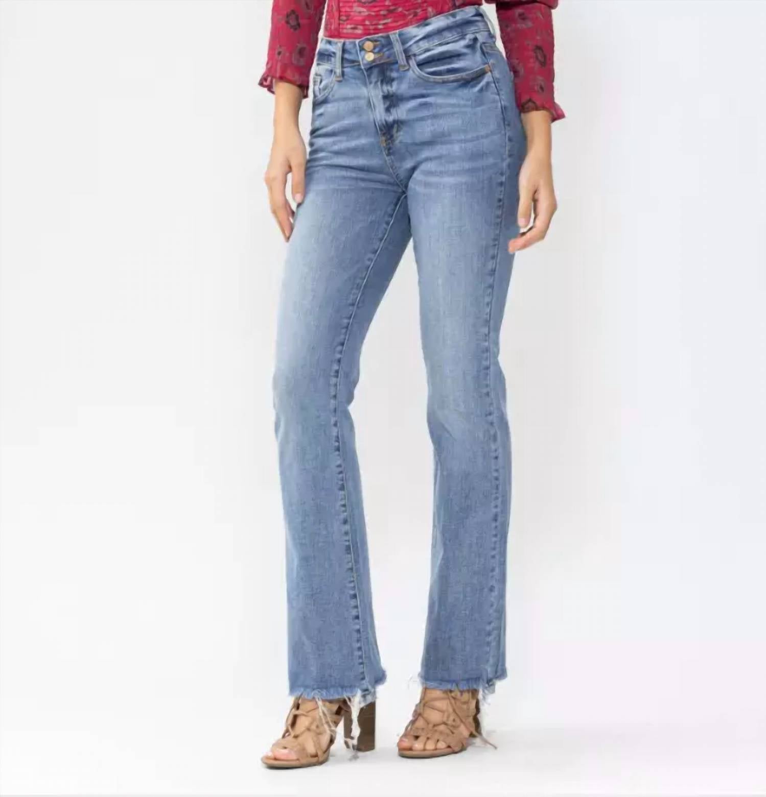 Basta adicionar botas! Apresentamos a Calça Jeans Bootcut de Cintura Alta com Botões Duplos da Judy Blue, confeccionada para a mulher moderna em um versátil tom azul médio. Confeccionada em 91% algodão, 7% poliéster e 2% elastano, a calça apresenta cós alto de 26 cm e 81 cm de comprimento. Com modelagem regular e perna bootcut, possui fecho prático de zíper e bolsos funcionais. Perfeita para o dia a dia, basta lavar na máquina e secar na secadora para manter a peça com aparência impecável.