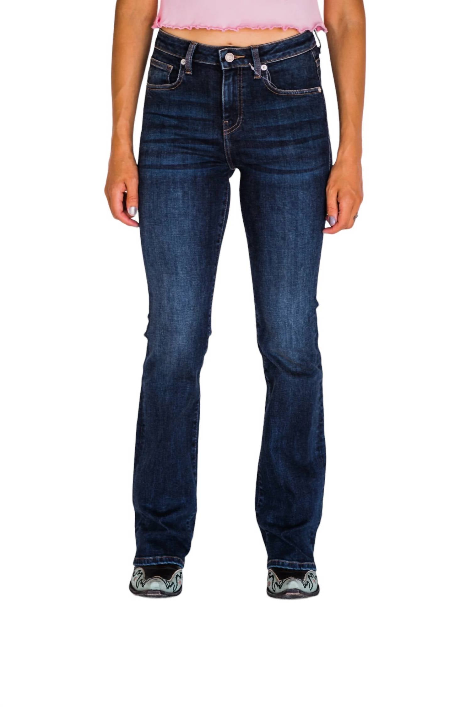 Basta adicionar botas! Este jeans Boot Cut esculpe e suaviza suavemente sua silhueta com um ajuste e elasticidade excelentes, com costura interna de 33" e cintura média de 9" no tamanho 24. Feito de 91% algodão, 7,5% Elasterell-P T-400, 1,5% Lycra® Spandex.