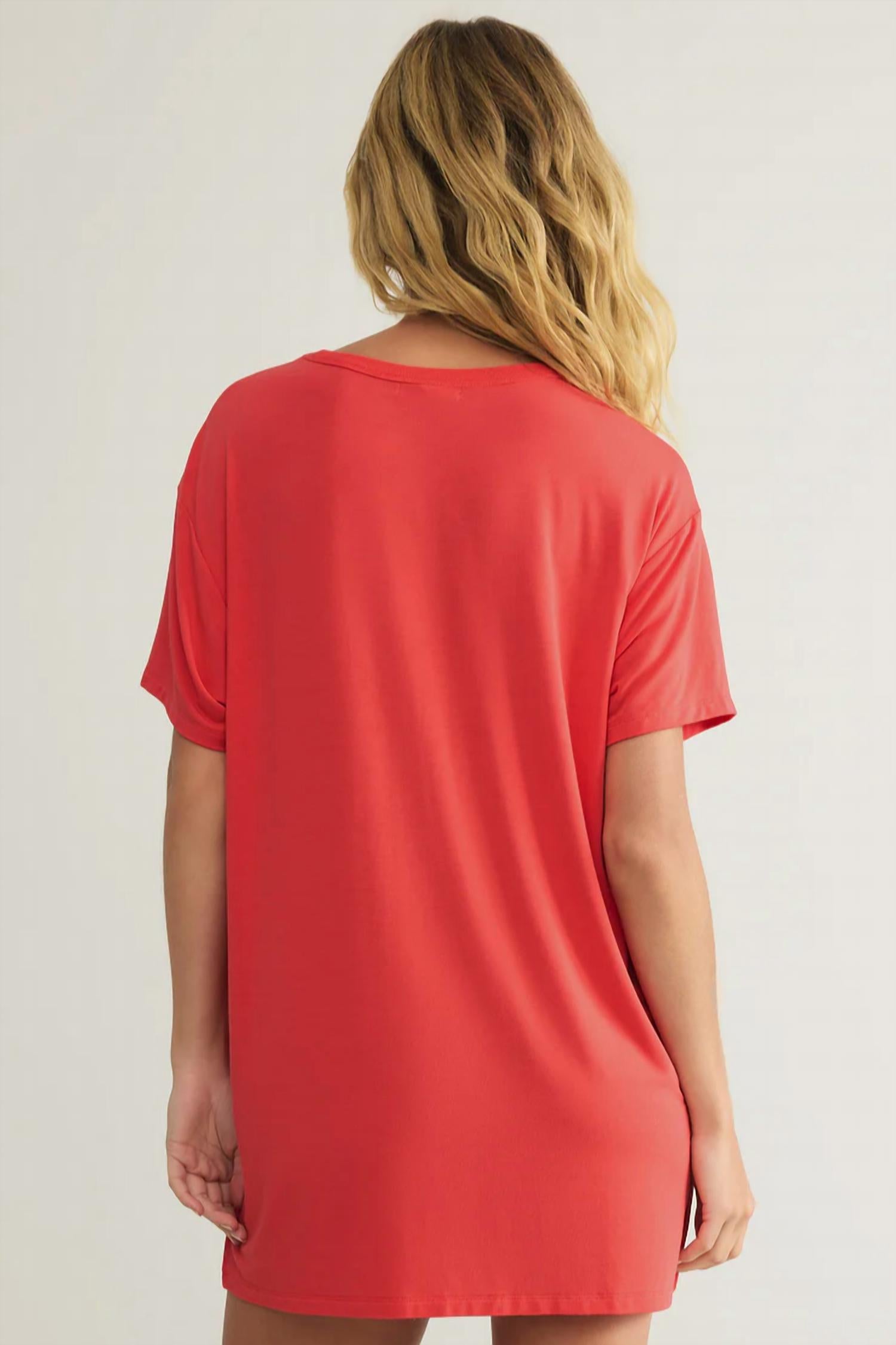 A camiseta de manga curta que você vai querer em todas as cores. Adote um estilo despojado com a Camisa de Noite "Wine & Dine Me" da Z Supply, com uma estampa divertida em serigrafia. Esta camiseta feminina de manga curta é confeccionada em jersey de rayon modal de peso médio — 46% rayon, 46% modal e 8% elastano —, garantindo um caimento macio e confortável. Com gola redonda e modelagem oversized, é a escolha perfeita para o streetwear de verão. Fechamento: Puxe para vestir. Cuidados: Lavar à máquina com água fria em ciclo delicado, secar em temperatura baixa ou secar na horizontal.