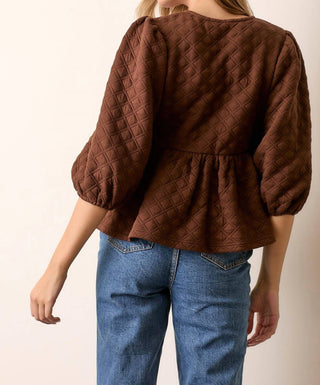 Baevely By Wellmade - Ariel Quilted Knit Peplum Tie Top